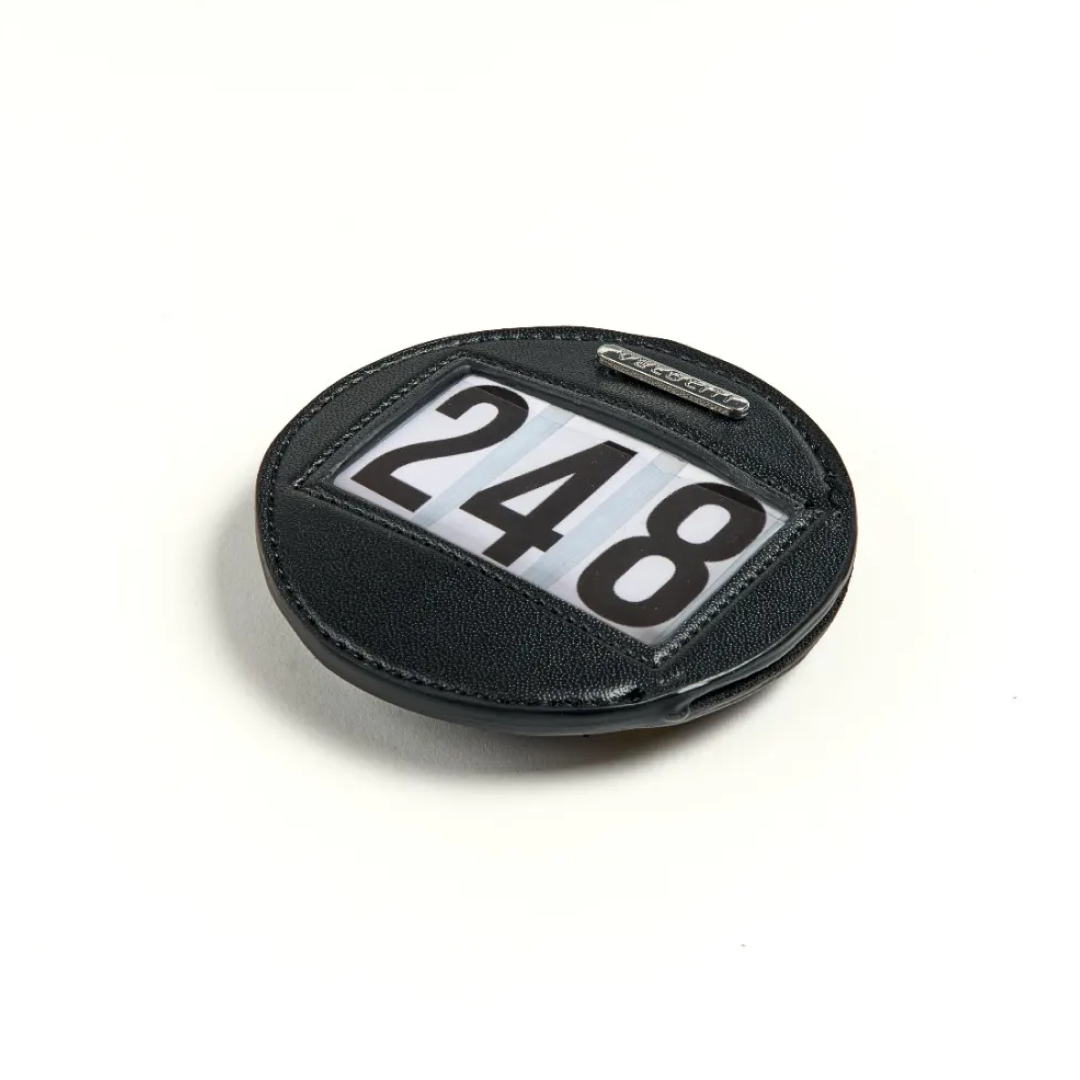 Display your competition number clearly with the show-smart Velociti bridle number holder. The oval leather unit is supplied with a wipe clean 3 slot sleeve and 3 sets of numbers 0-9. A pair of touch close loops secure to the bridle. Diameter: 100mm.