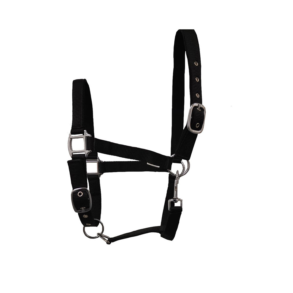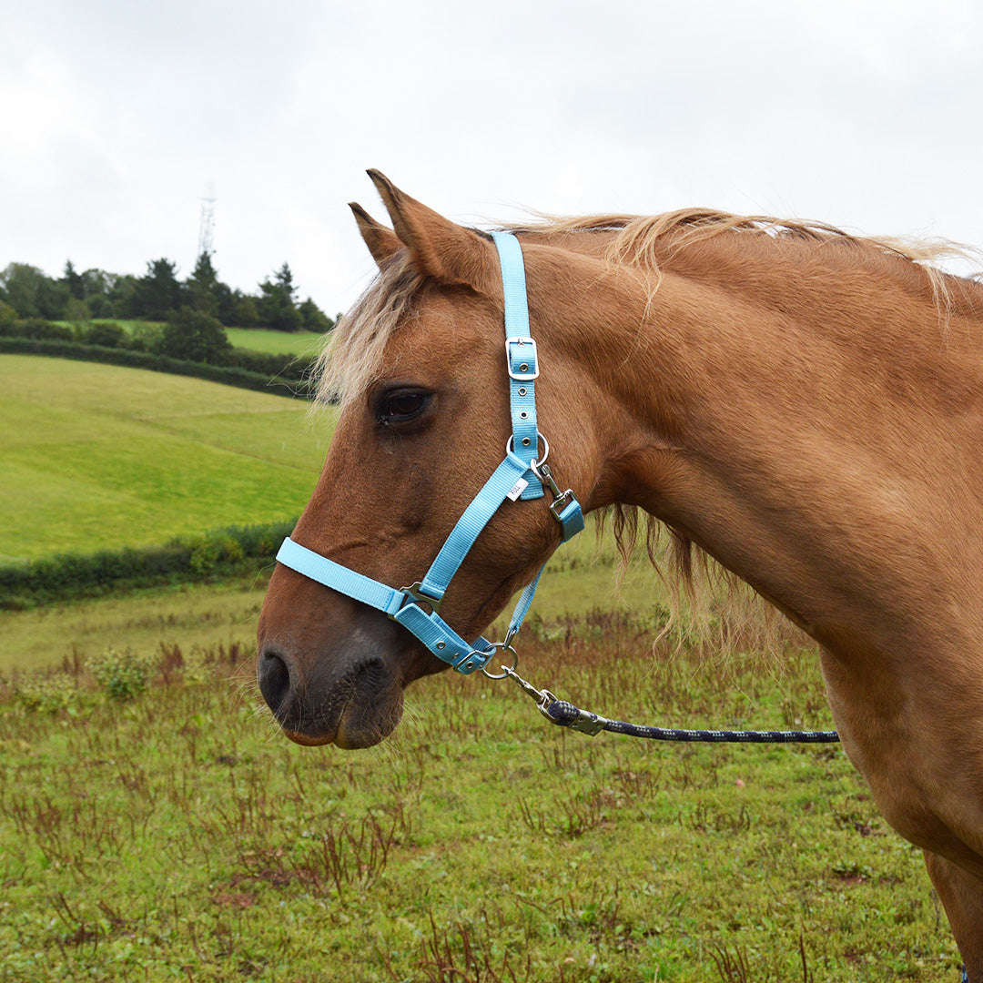 The GS Equestrian Economy Head Collar is easily adjustable at the head and the back of the noseband with a clip-on throatlash. This nylon headcollar comes in a variety of fantastic colours with silver colour fittings and is fantastic value for money. Made from polypropylene with strong and robust fittings and reinforced eyelets. Matching lead ropes are available separately.