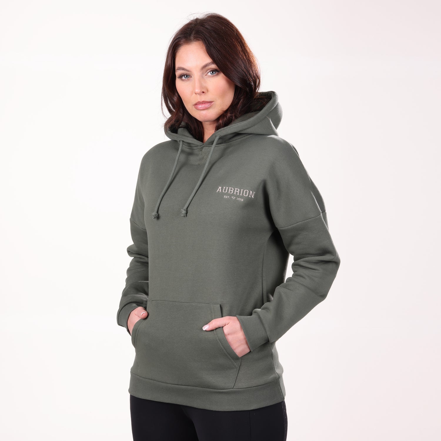 The Shires Aubrion Ladies Serene Hoodie is the perfect partner on the yard or around town and even better teamed with the matching Serene shorts. Created with a relaxed fit in soft feel cotton-rich brushed back fabric for comfort with self-fabric lined drawstring hood for style, kangaroo style pocket, ribbed arm cuffs and hem. Finished with a self-coloured embroidered logo and satin inner neck trim. .