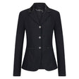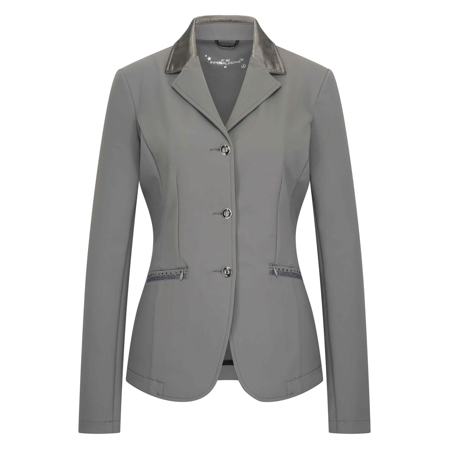Expertly crafted with a 4-way stretch fabric, the Imperial Riding Vive Capone Competition Jacket offers a polished and professional look. This competition blazer features a covered zipper and 3 visible buttons, as well as a sparkling Rhinestone logo artwork at the back. Attractive details, such as glittertape, pleats, and satin collar with Rhinestones, add a touch of elegance. Lined with stretch lining for ultimate comfort, this jacket also includes 2 weltpockets with blind zipper closures for secure storage. Perfect for the show ring, this jacket combines both style and functionality.