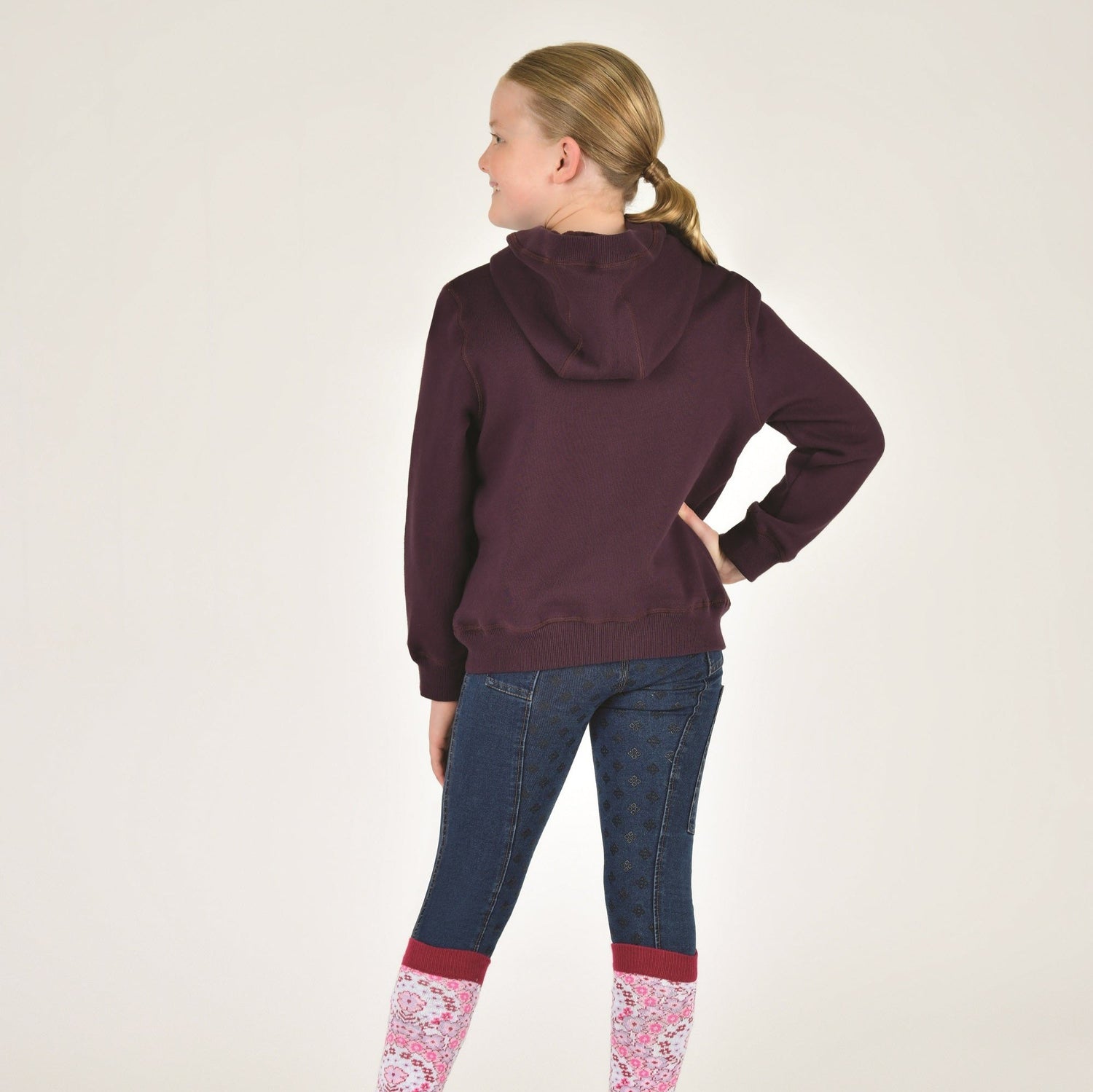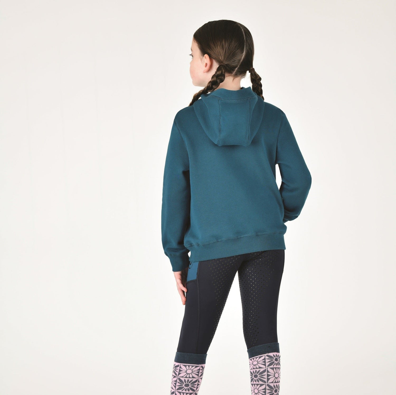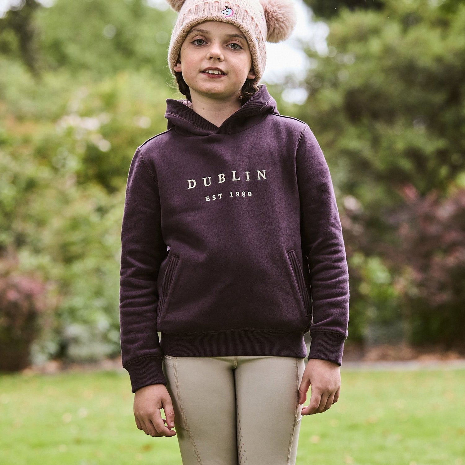 The super comfortable Dublin Kids Lilah Lurex Logo Hoodie is made from a naturally breathable brushed cotton with contrast embroidered Lurex Dublin logo branding across the chest. Featuring two front pockets for the classic look, and ribbed cuffs and hem, this hoodie is perfect for cooler days around the yard or cosying up at home. Coming in a a relaxed fit, and available in two classic colours in Childs sizes.