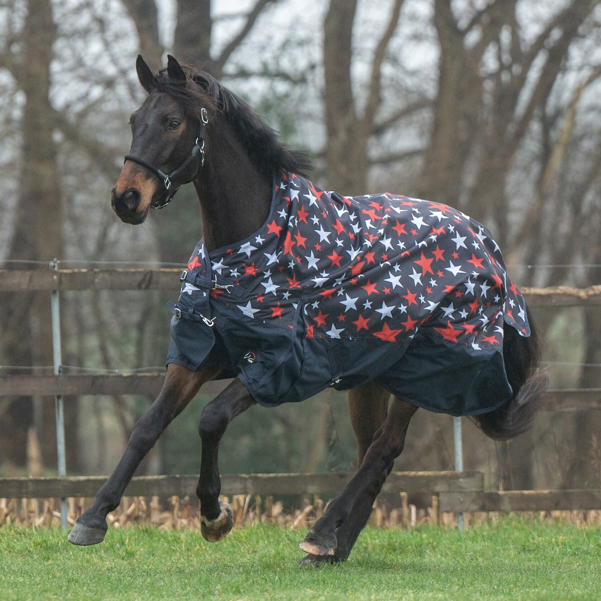 The HKM 600D 300g Highneck Rug -Norwich- is a durable and functional choice for your horse. With its waterproof, windproof, and breathable design, it offers superior protection and comfort. The 300g cotton filling provides warmth and the smooth, rip-proof fabric is easy to clean. Plus, the rug comes with adjustable front closures, a tail strap and guard, and a convenient bag.