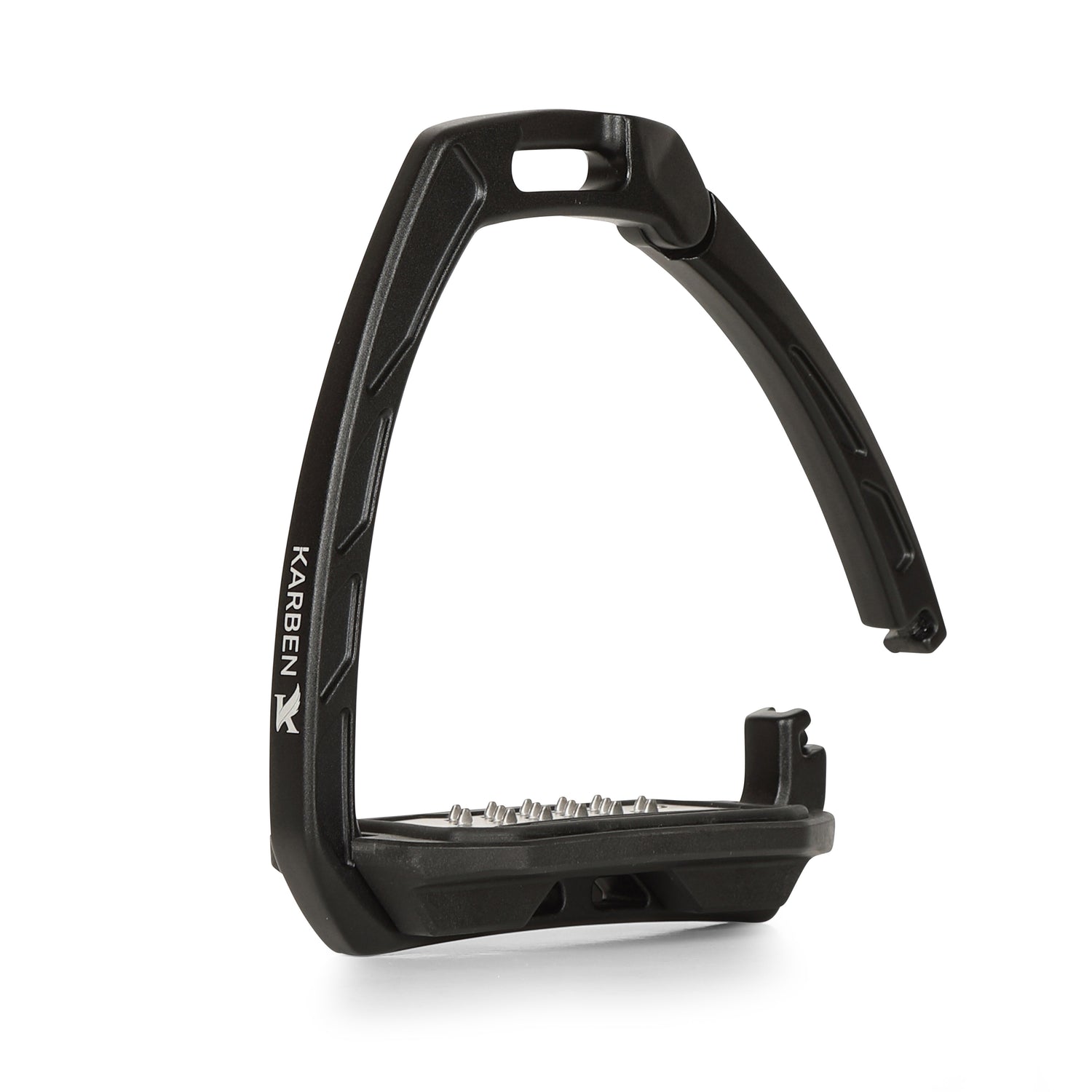 From training to competition, increase efficiency, boost power and feel confident with the Karben UltraGrip stirrups. A reassuring quick release safety system assists with escape of the foot via the spring loaded arm, reducing the risk of serious injury in the event of a lateral fall. The arm is secure until pressure from a fall forces it open, the arm re-engages with a single click that keeps it secure whilst in normal use.