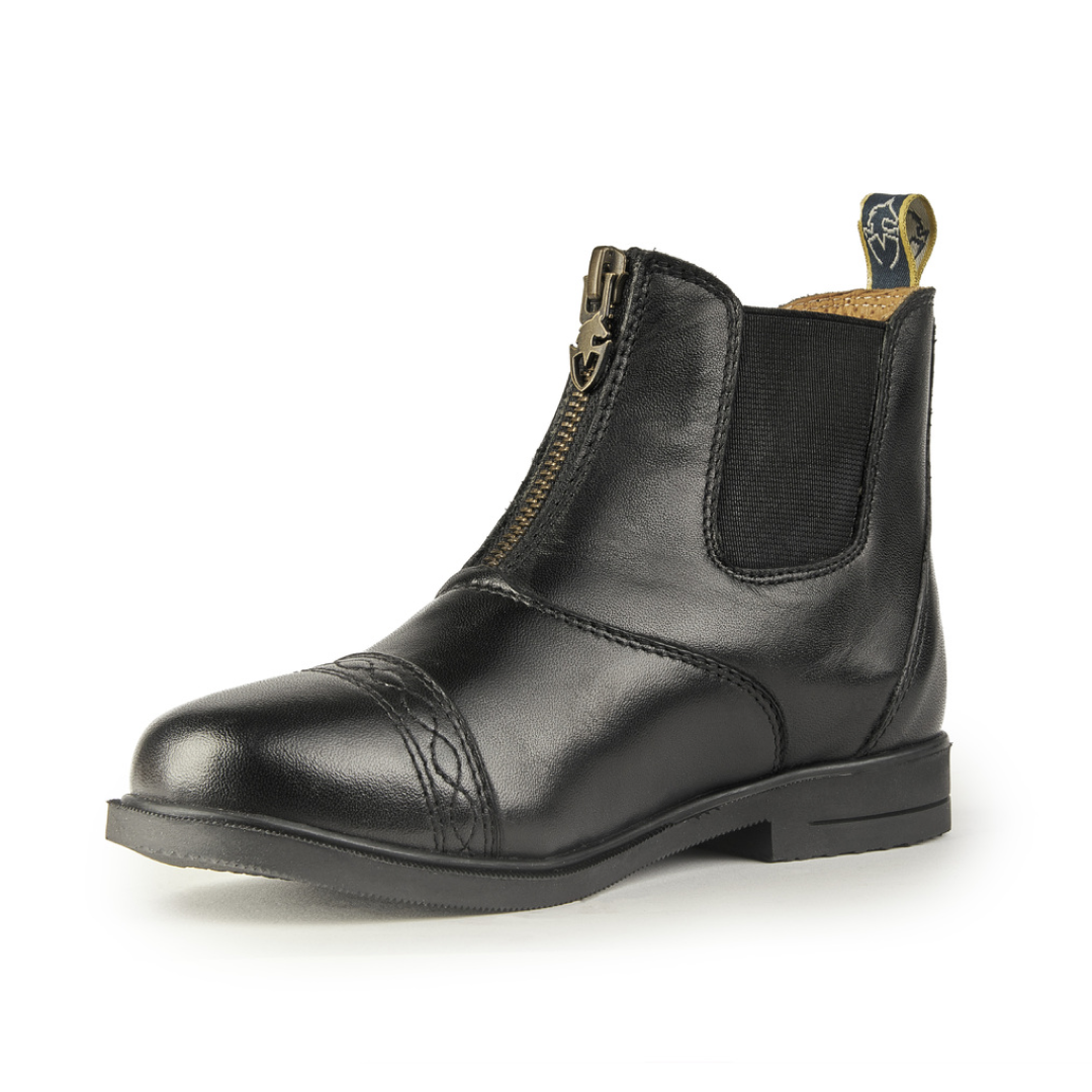 The Shires Moretta Children's Materia Boots will smarten up pony riding, these leather paddock boots are suitable for all riders, and offer a great balance between comfort and stability. The Materia zip front boots are easy to fit and have a rounded toe for plenty of space. Brogue stitching detail looks smart and the high shine polished finish resists water stains and a quick polish will restore any wear and tear.