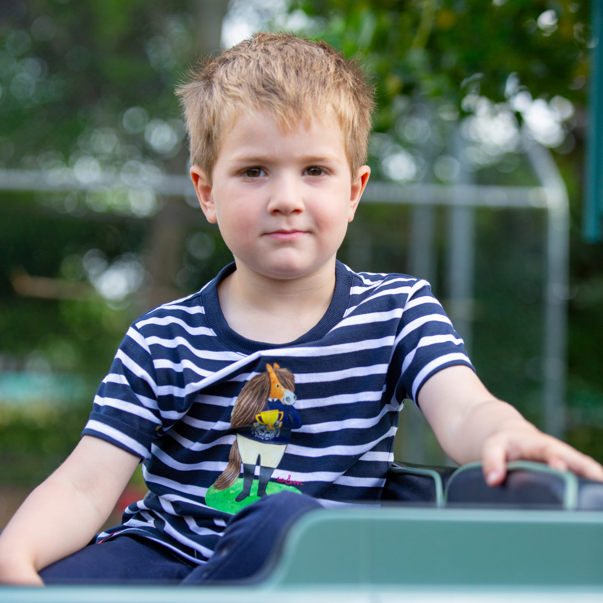 A crew neck t-shirt with turned up short sleeves and a relaxed fit. Featuring Show Pony Winnie who has won a trophy for best effort! Designed in 100% cotton for breathable comfort.