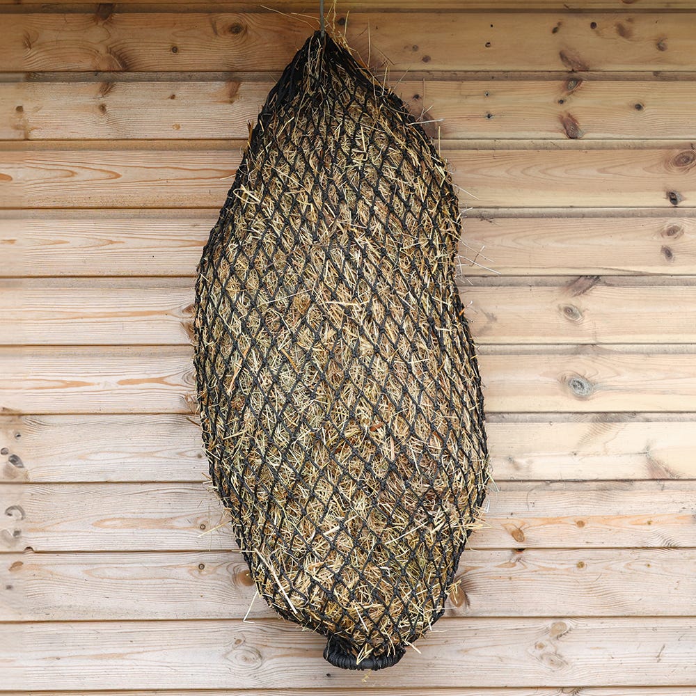 A durable rubber ring is used at the bottom of the haynet instead of metal to make this safe for your horse after steaming. This haynet is ideal for greedy feeders, those on a diet or horses that need their ad lib forage controlled. Individually crafted with small holes to slow hay consumption and trickle feed your horse or pony, ensuring better digestion and less waste on the floor. 2.5cm holes.
