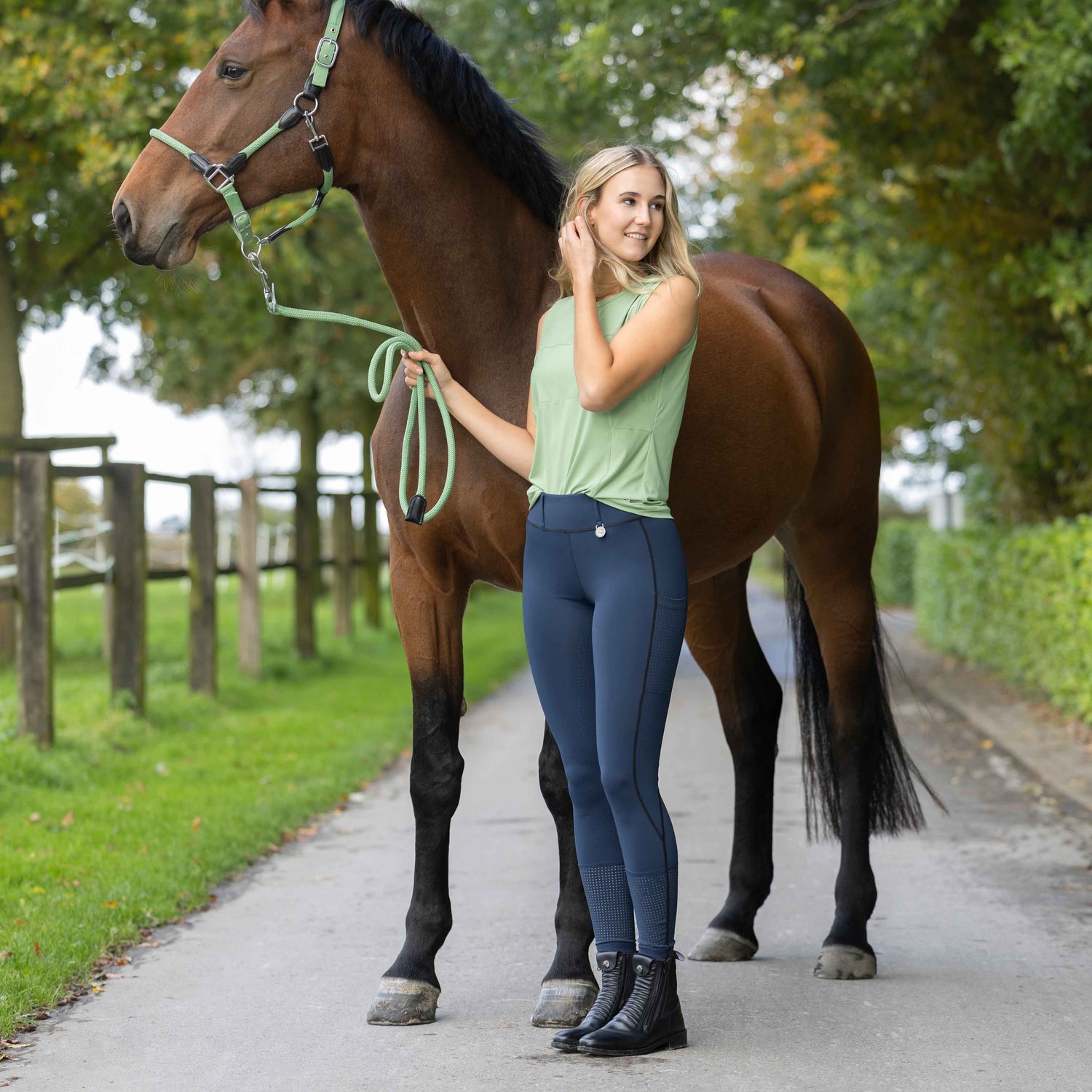 The top Mila combines functionality and style in a sporty design. Thanks to the breathable mesh material, it is particularly breathable and quick-drying, making it comfortable to wear even on warm days. The elasticated stretch material offers optimum freedom of movement, while the decorative metal logo adds a sophisticated touch to the look.