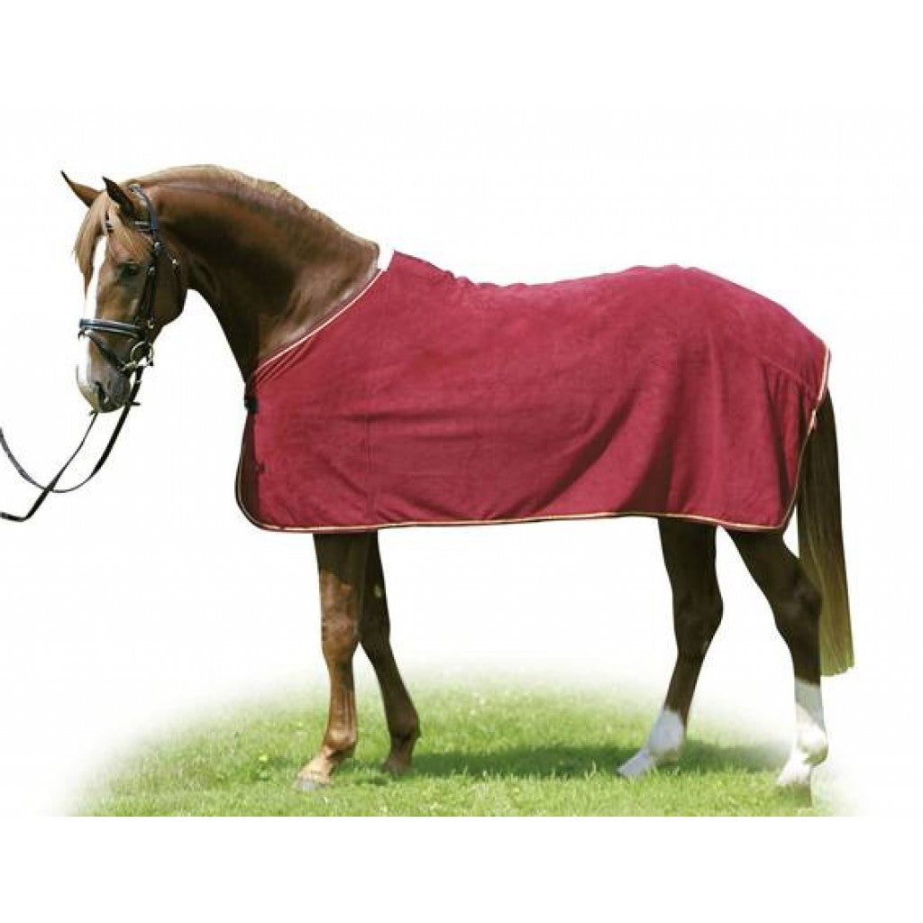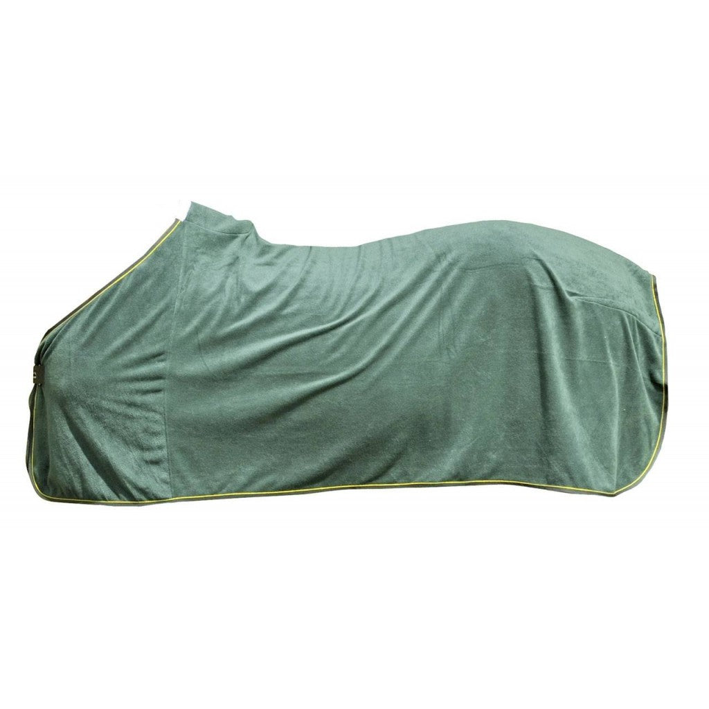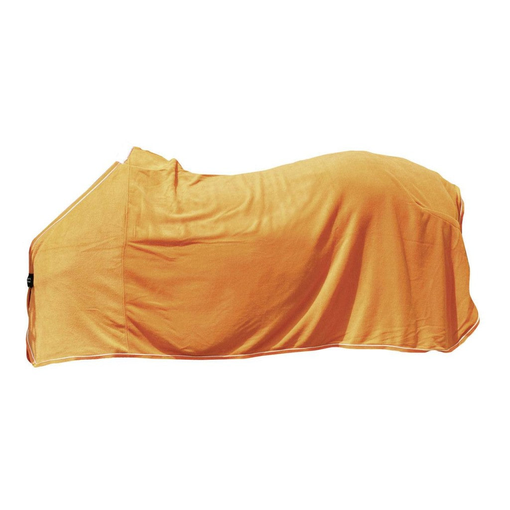 The HKM Cooler is the perfect choice for keeping your horse comfortable and dry after a workout or during transport. Made from 100% polyester, this cooler is highly insulated and breathable, ensuring optimal sweat absorption. The double-sided, extra-soft polar fleece provides extra comfort for your horse, while the tail strap and protective padded withers ensure a secure fit. The extra long sides and high cut provide additional coverage, making this cooler suitable for horses of all sizes. Machine washable at 30 degrees and suitable for dryer, this cooler is also durable and hard wearing, making it a great investment for any horse owner.