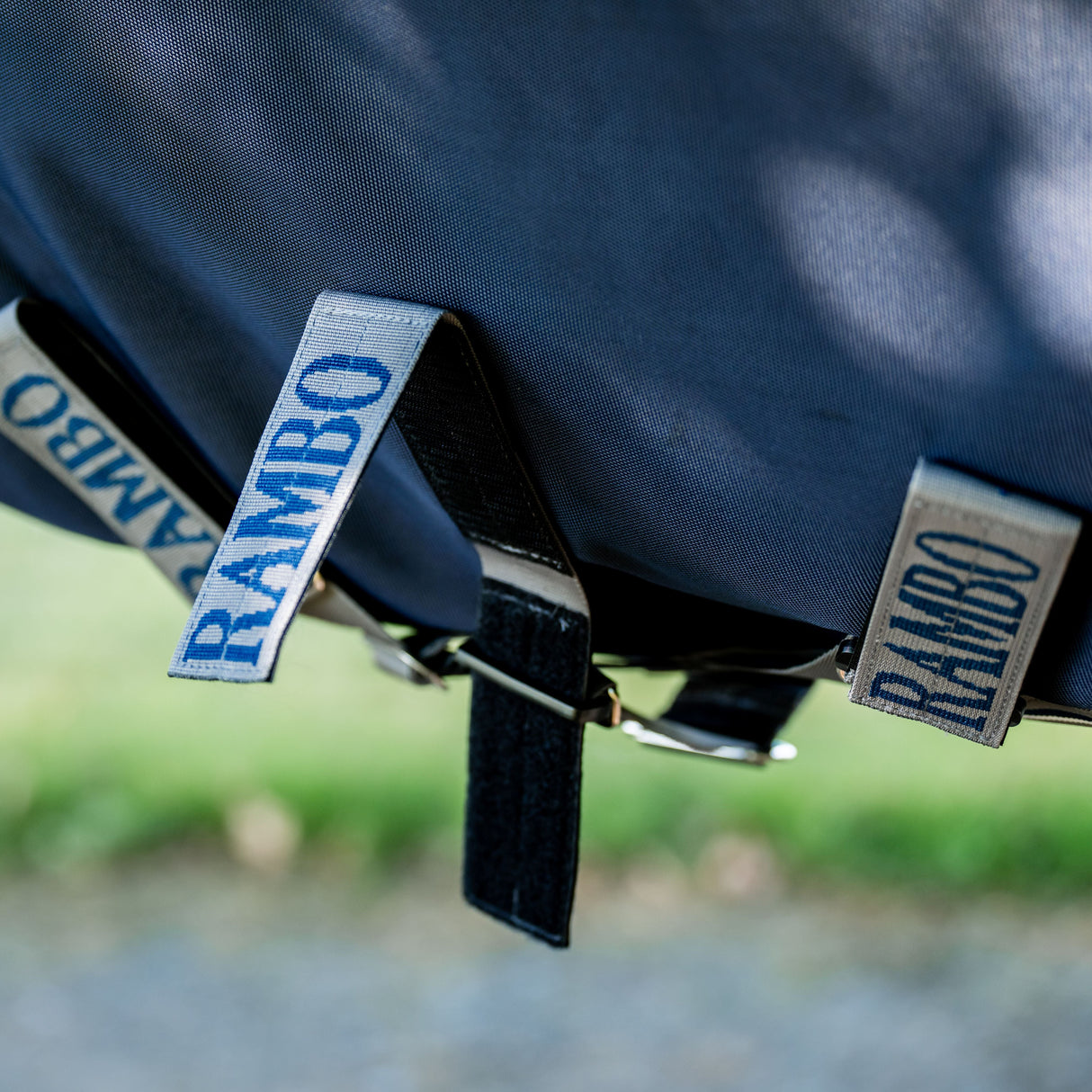Other details you'll both love include a wipe-clean tail cord, reflective strips, three crossed removable surcingle straps incorporating the Rambo® Safety Surcingle System and anti-bacterial, anti-static, shine-enhancing embossed lining.