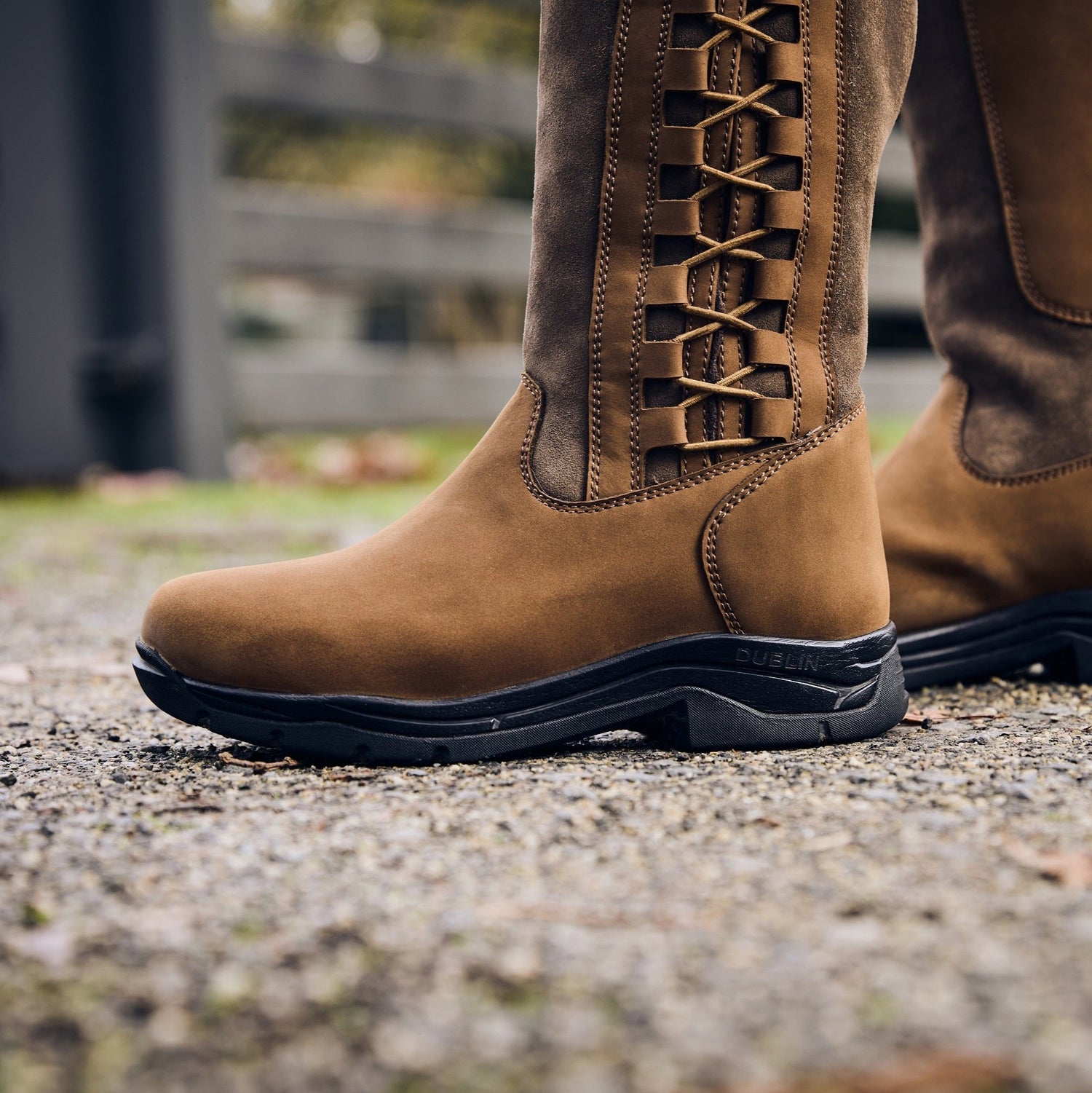 The Dublin Pinnacle III Boots provide exceptional breathability and long-lasting comfort. They have a full-length waterproof membrane lining to keep your feet and lower legs dry. These boots are lightweight, yet durable, and feature an ultrasoft Phylon midsole and Tough Tec rubber outer sole. e. They are fashionable, full leather lifestyle boots with full side lace adjustment for a customised fit, adorned with Dublin branded metal aglets.