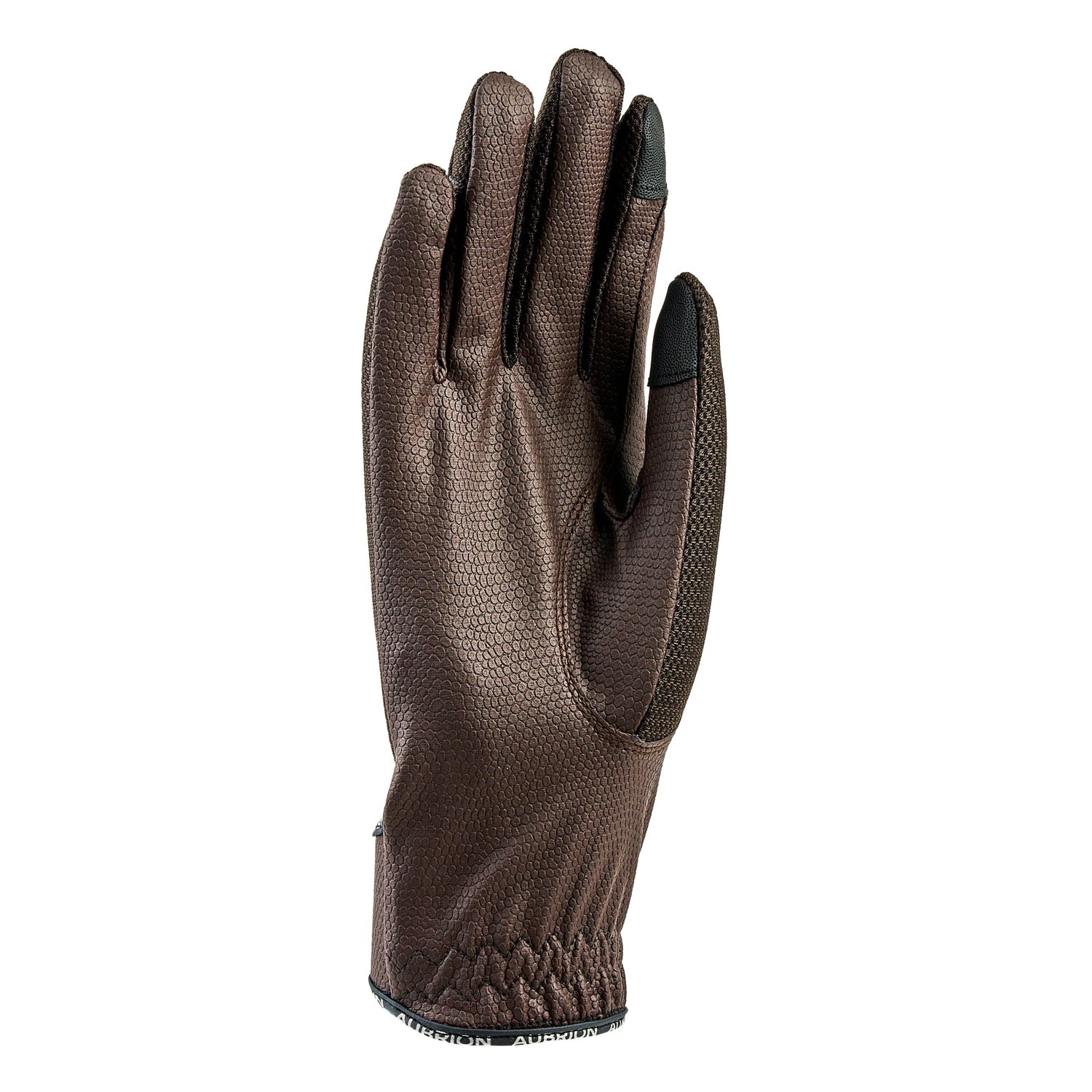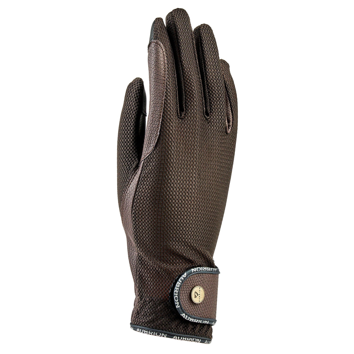 The Aubrion Aero FlexFit gloves keep a show-smart look to your warm weather riding. Open knit backs release heat and allow free flow of air to keep hands comfortable. Palm side, FlexFit fine synthetic leather features an attractive faux snake skin texture and offers a LiteGrip feel for greater rein contact.