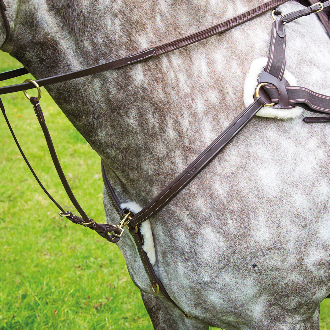 Das Shires Salisbury 5-Punkt-Vorderzeug besteht aus schönem, weichem und geschmeidigem Leder mit einer Polsterung aus 100 % reiner Schafwolle, um sicherzustellen, dass sich Ihre Pferde bei der Arbeit wohlfühlen.