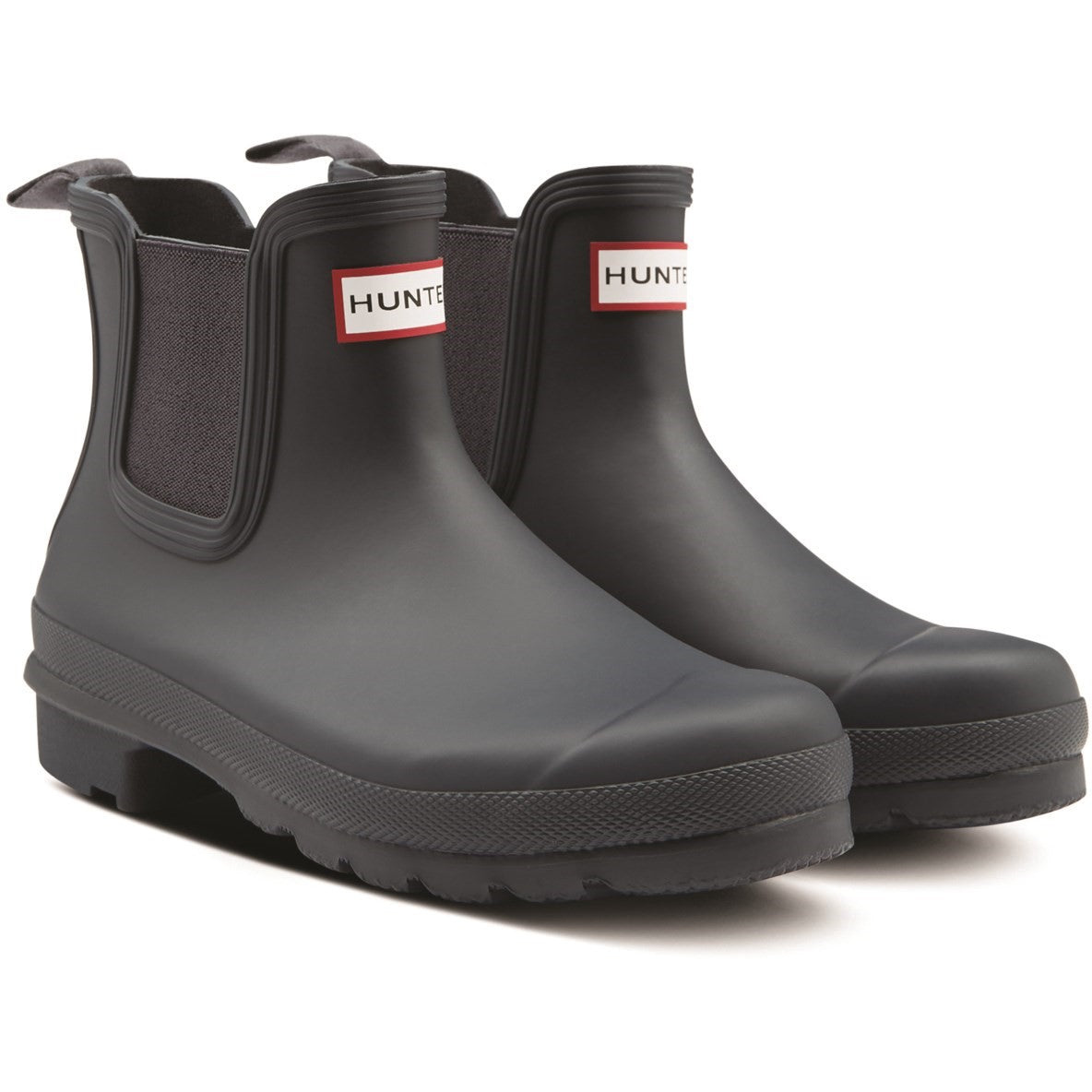 Der neue und verbesserte Hunter Original Chelsea Boot hat eine noch optimalere Passform für maximalen Komfort den ganzen Tag. Jeder Stiefel ist für den Regen gerüstet und aus Naturkautschuk handgefertigt und für hervorragenden Schutz vulkanisiert. Er behält die ikonischen Merkmale eines traditionellen Chelsea-Stiefels bei und verfügt über elastische Zwickel und eine Nylon-Zuglasche, um das Anziehen in den Stiefel zu erleichtern. Diese wasserdichten Chelsea-Schuhe in klassischem Mattschwarz sind ein unverzichtbares Kleidungsstück für nasses Wetter.