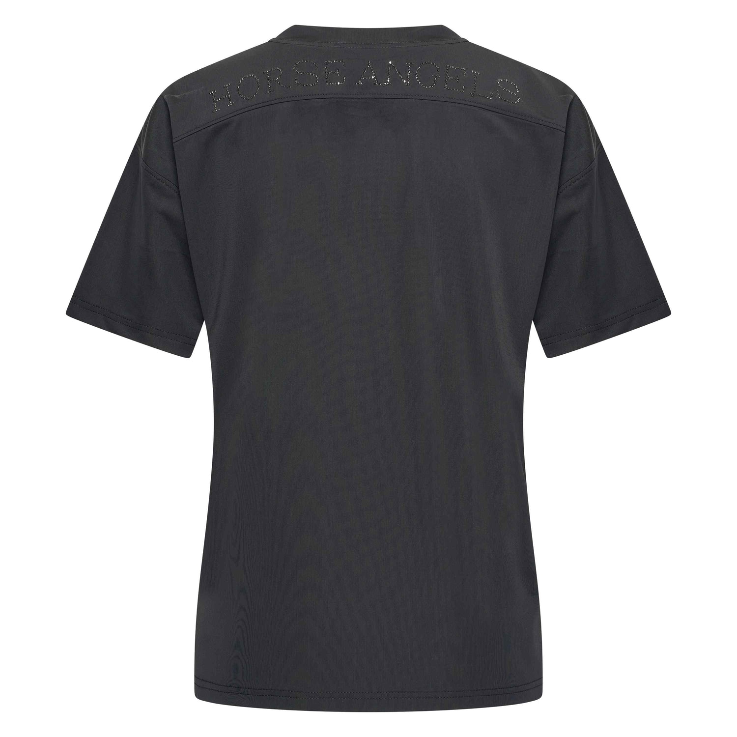 Introducing new Micro Polyester T-shirt, perfect for all the equestrians out there! Designed with a round neck shape and featuring the stylish IMPERIAL RIDING print on the center front of the necktape, this shirt is both comfortable and trendy. The short sleeves and oversized fit provide maximum comfort while riding or working around the barn. The back of the shirt also features a round shaped seam with the stunning HORSE ANGELS design embellished with stones, adding a touch of sparkle to your look. Stand out in the arena with Imperial Riding Micro Polyester T-shirt - order yours today!