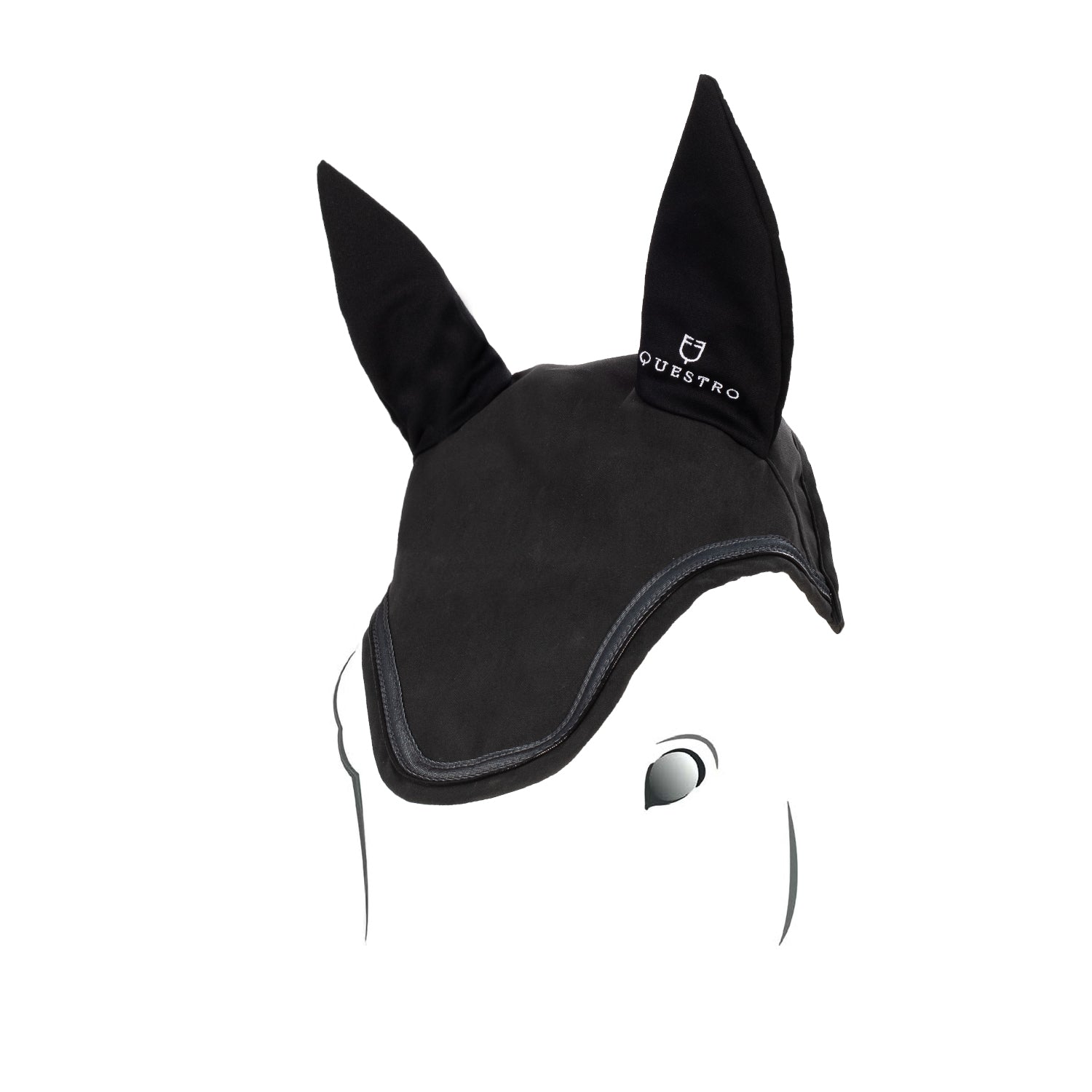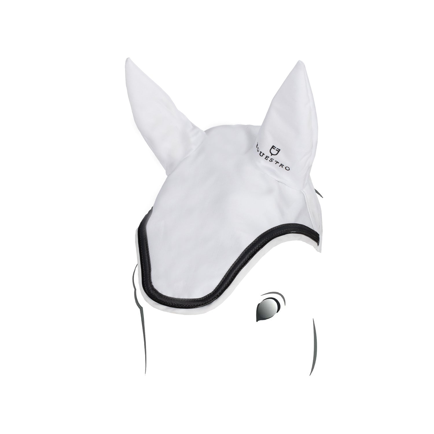 Elegance fly veil made of highly breathable and elastic technical fabric for a perfect fit. Fly veil with embroidered logo in technical fabric, designed to protect the horse's ears from insects and reduce noises.