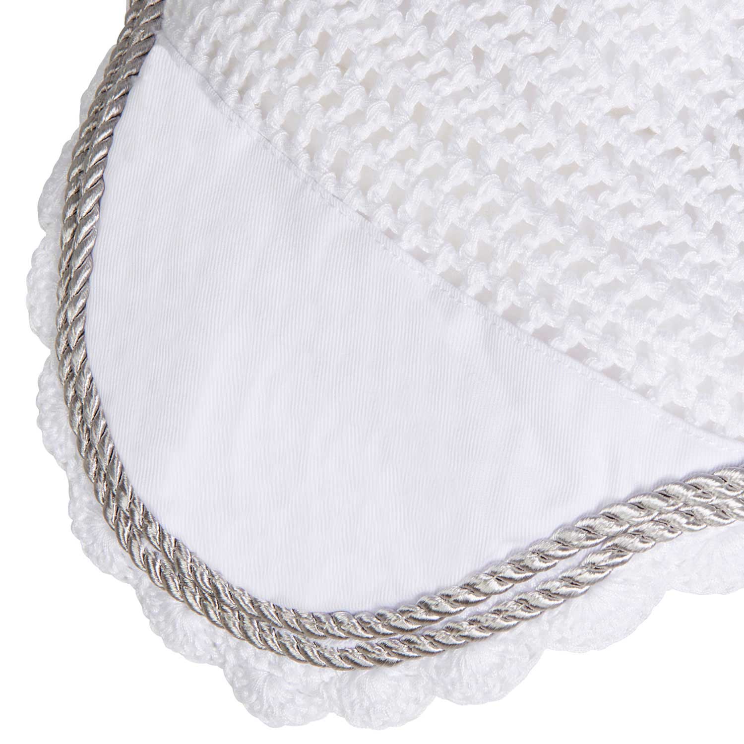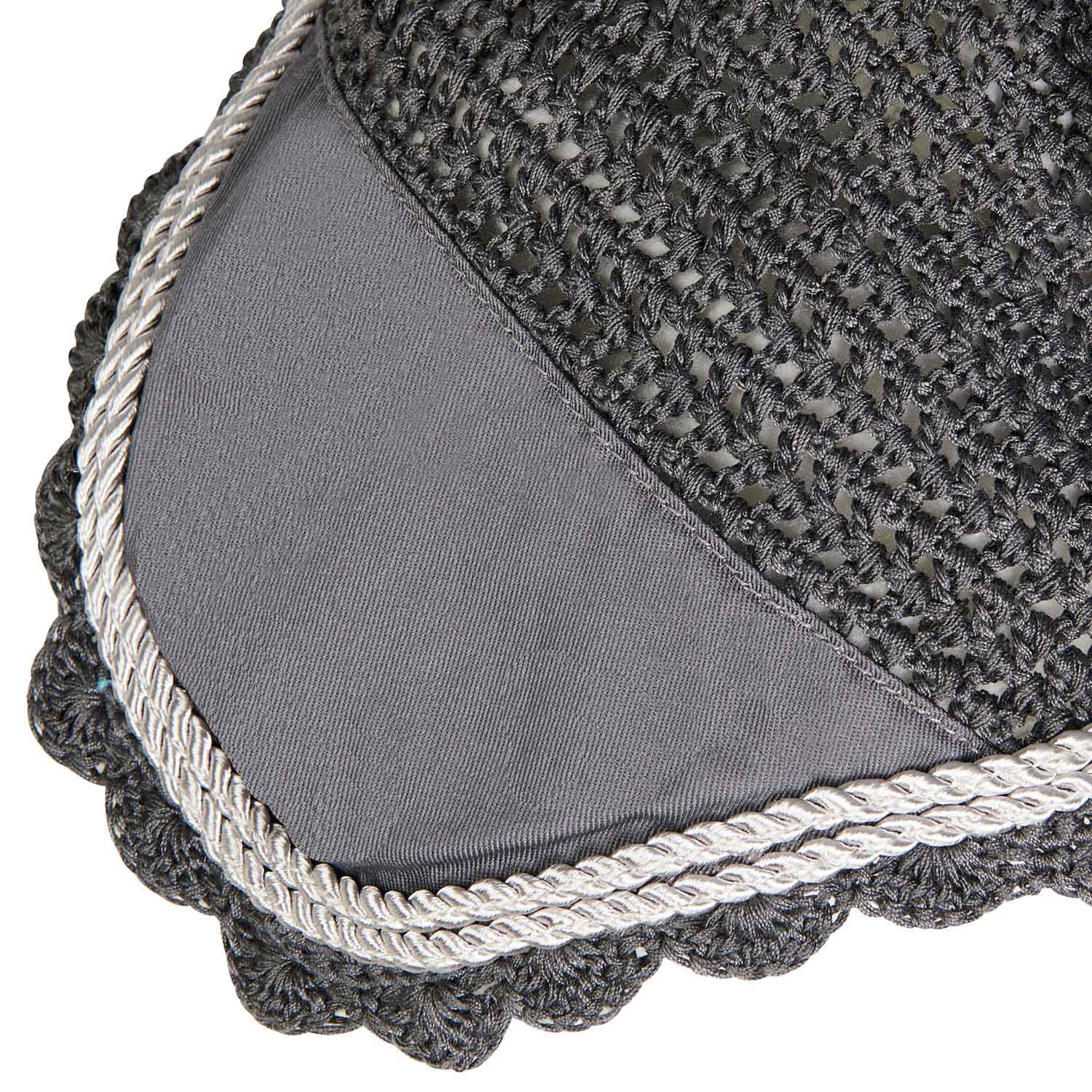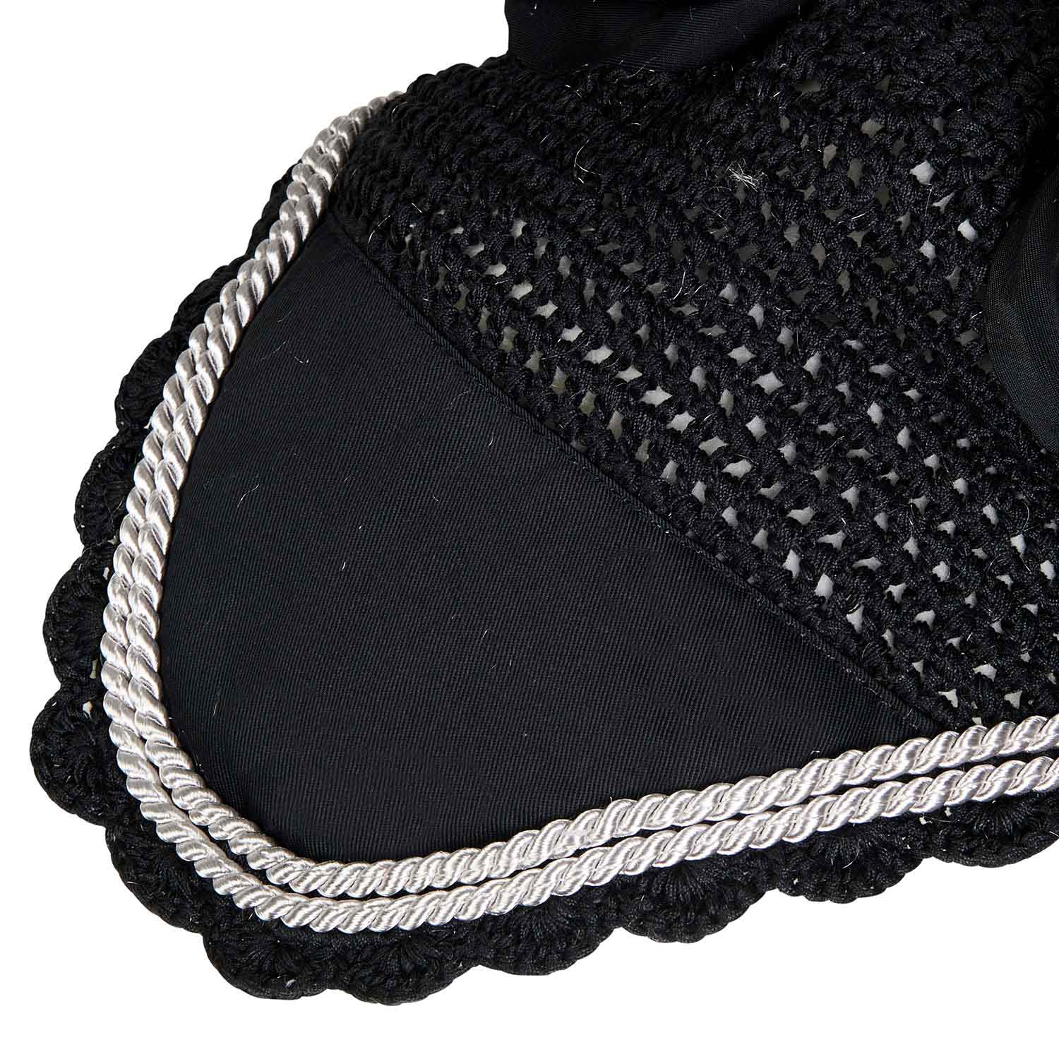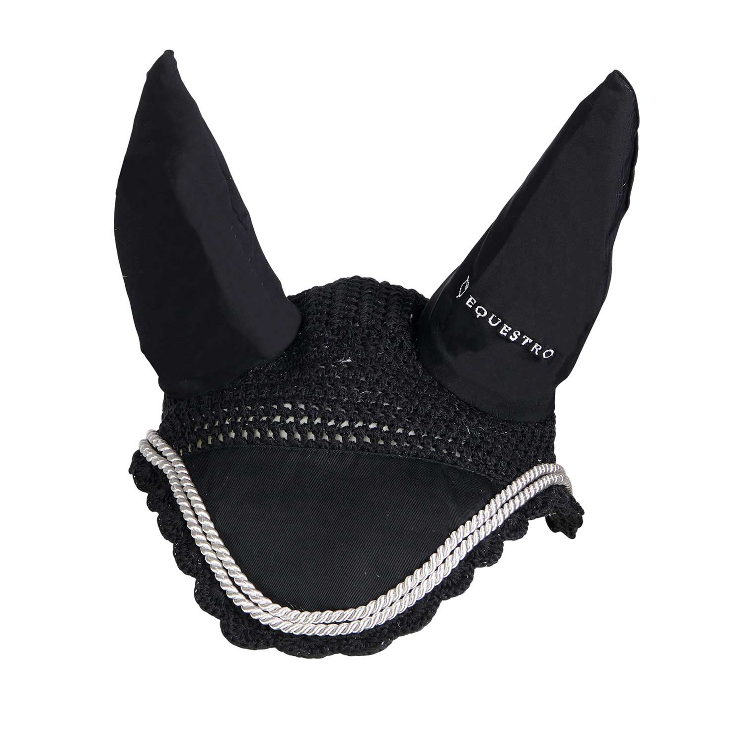 Fly veil coordinated with the saddle pad, made of knit and elastane and designed to protect the horse's ears from insects and reduce noise.