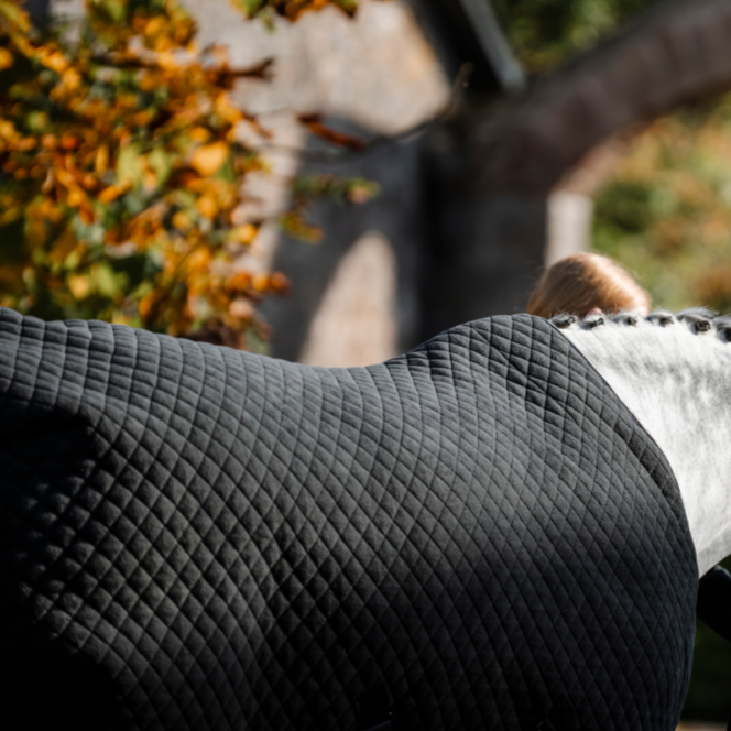 The contour cut of this cooler follows the shape of your horse more naturally, allowing for a super cosy fit. At the same time, the dual leg arches offer greater freedom of movement, for example, while being loaded or walking during cool down after exercise.