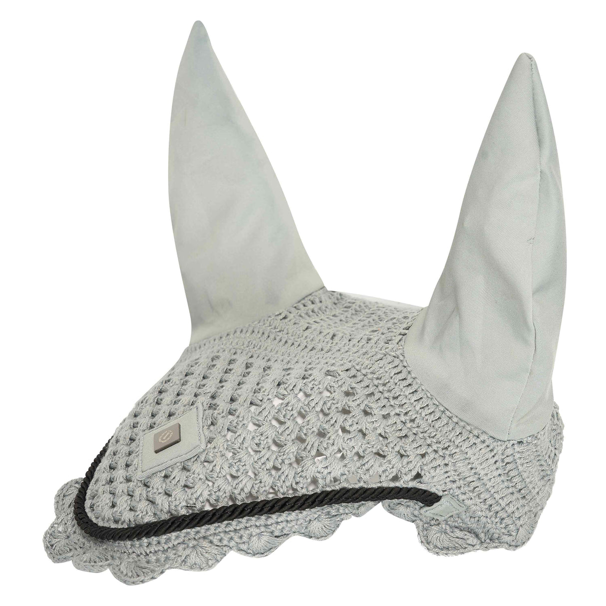 Complete your IRHRebel set with this flyveil! It features a cotton crochet headpiece, fabric ears and a logo coin on the front. The flyveil is enriched with a cool black piping cord, that matches to the saddlepad.