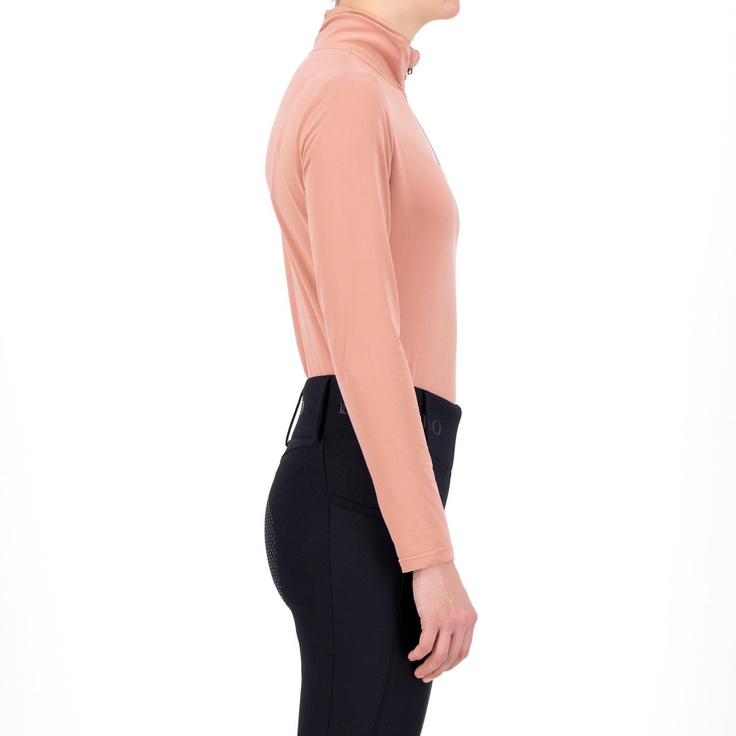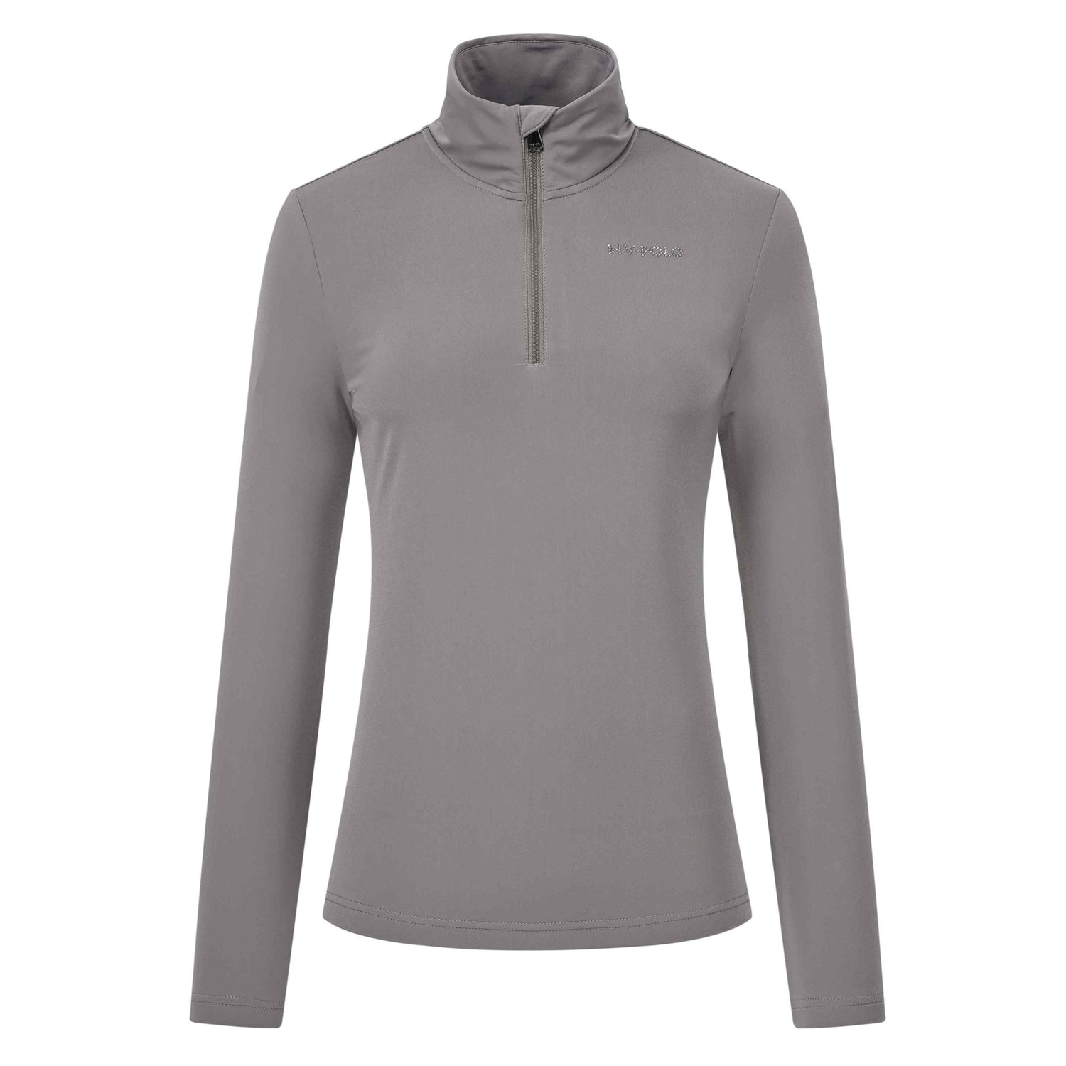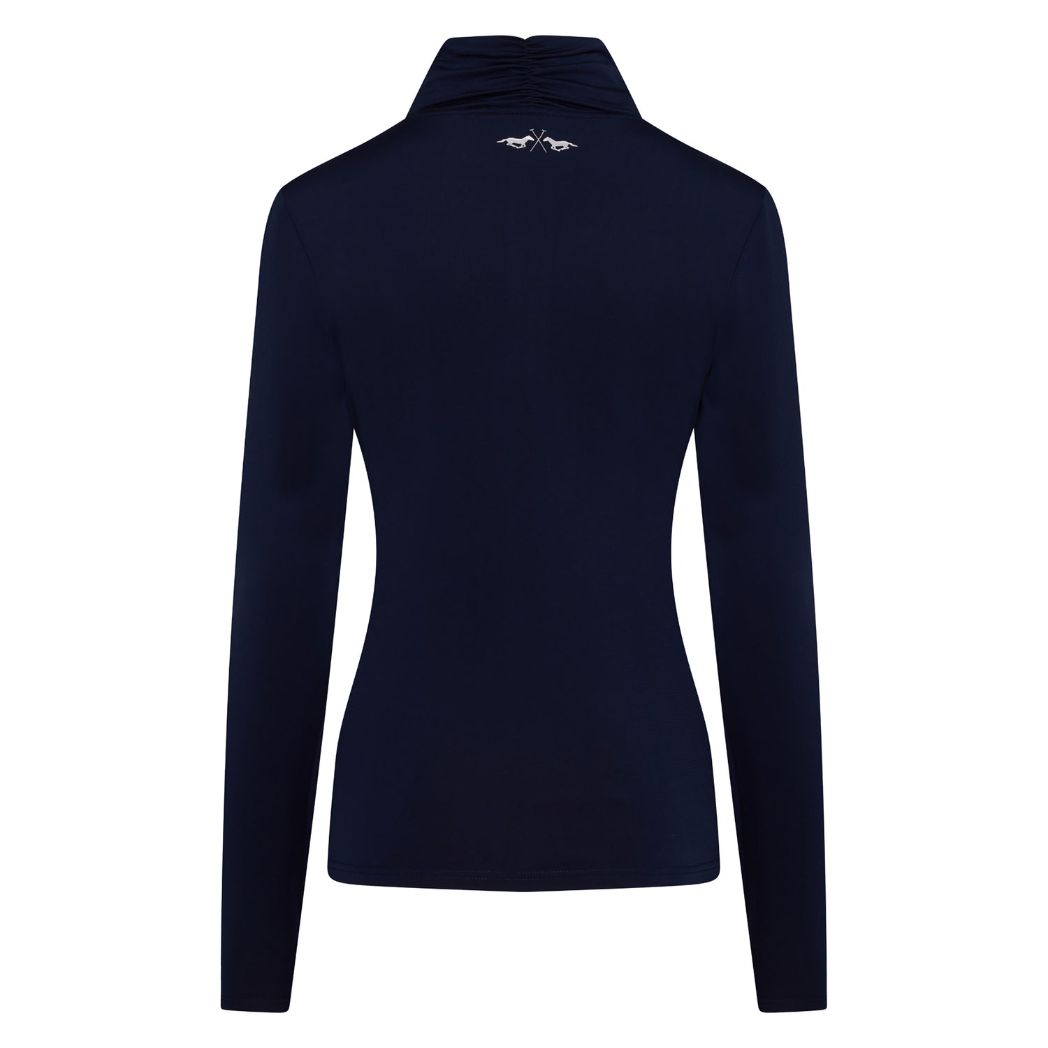 The HV Polo Lumi Top is a stylish and versatile pullover featuring a center front zip. This fitted top has a 4-way stretch, and the inside is brushed for added comfort. Its high neck collar is accented with elegant fabric gathering at the back, and the chest displays the HV Polo artwork in rhinestones. Additionally, the back below the neckline showcases the iconic Horses logo in a foil print.