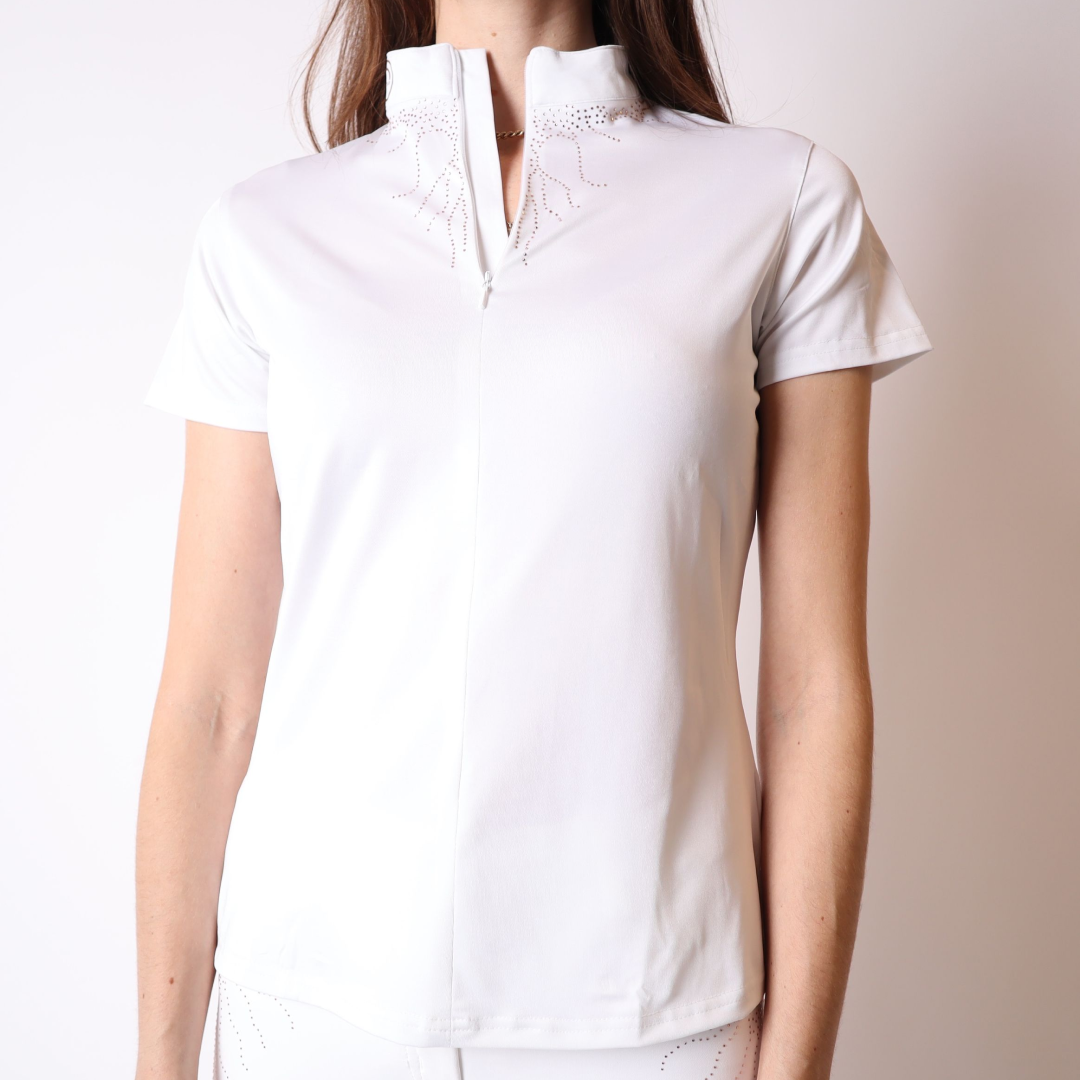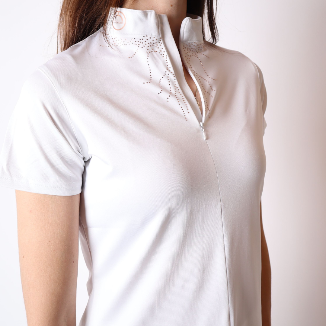 Das Montar Femka-Polo hat einen sehr raffinierten Look mit atemberaubenden roségoldenen Kristallstreifen um den Hals und entlang der oberen Brust. Die roségoldenen Kristall-Lians sind nur durch einen perfekt versteckten Halsreißverschluss getrennt. Das Polo besteht aus dem hochfunktionellen MON-TECH-Gewebe, das für ein äußerst atmungsaktives und angenehmes Tragegefühl beim Fahren sorgt.