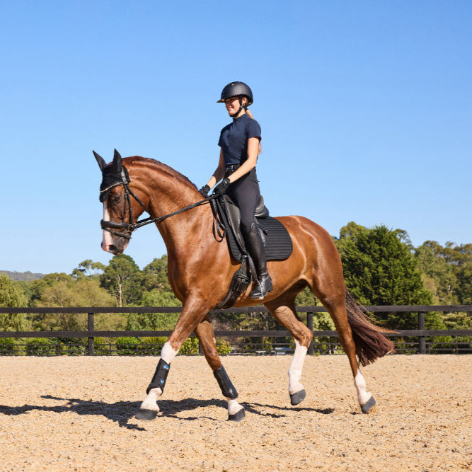 This guarantees your horse's legs are safeguarded from accidental knocks and bumps, keeping them safe and sound. Perfect fit with an adjustable touch close fastening system ensures a secure and comfortable fit for any horse. These fastenings make it easy to put on and take off, ensuring the boots stay in place and offer consistent protection without slipping or causing discomfort.