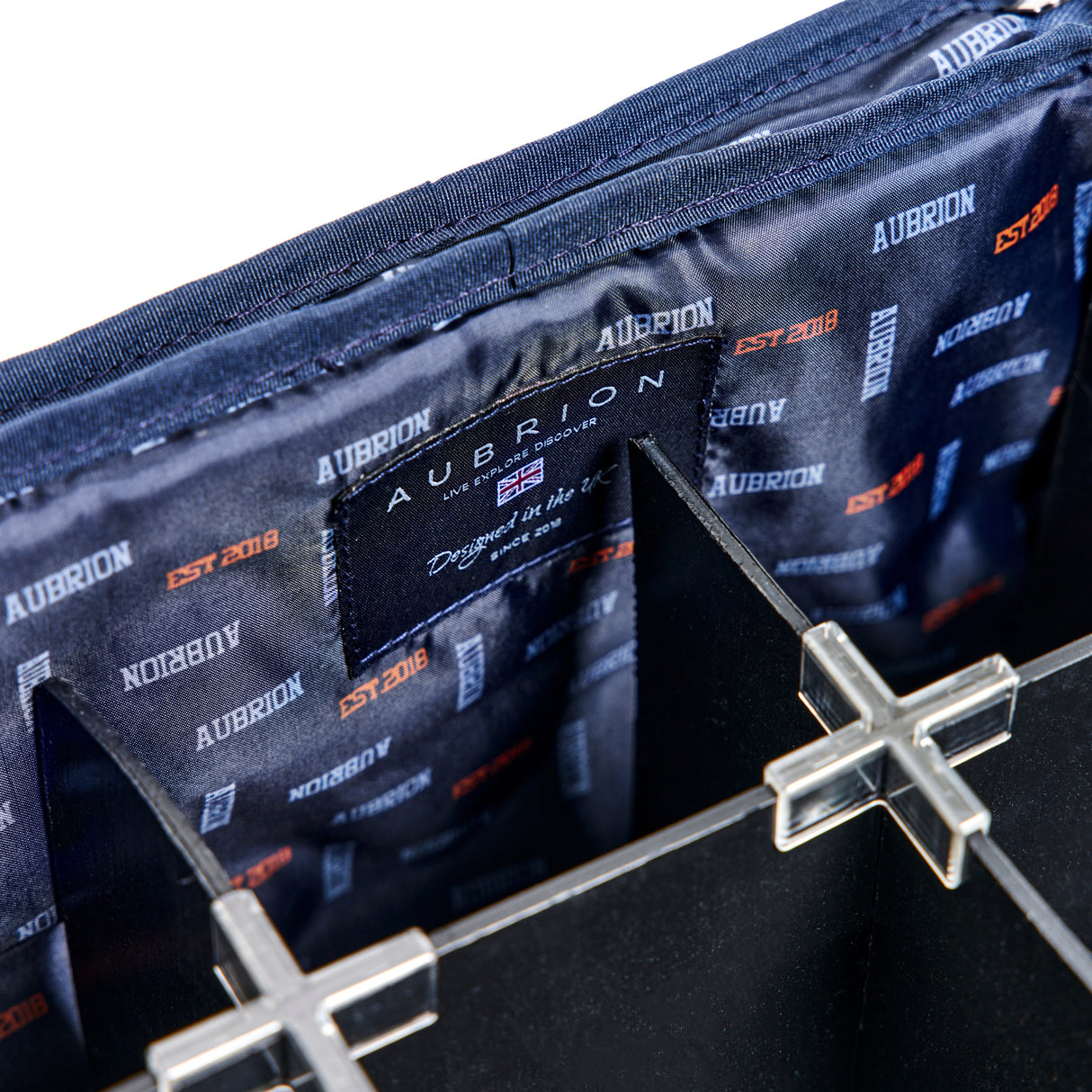 The Aubrion Equipt grooming kit bag keeps your kit organised and easy to access. The zip opening bag features an inner eight part divider, ideal for transporting bottles and keeping everything quick to find. A mesh ventilation panel keeps the air flowing for freshness.