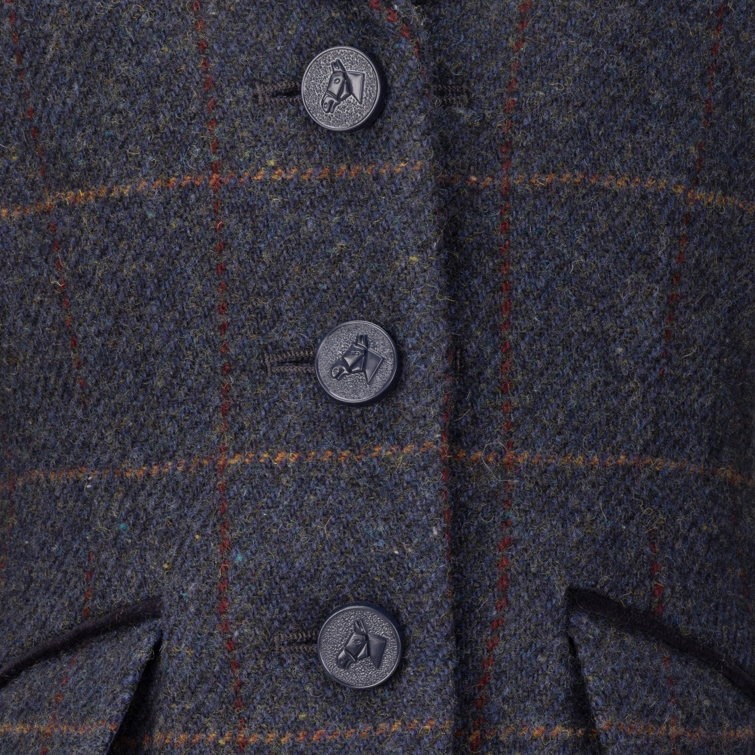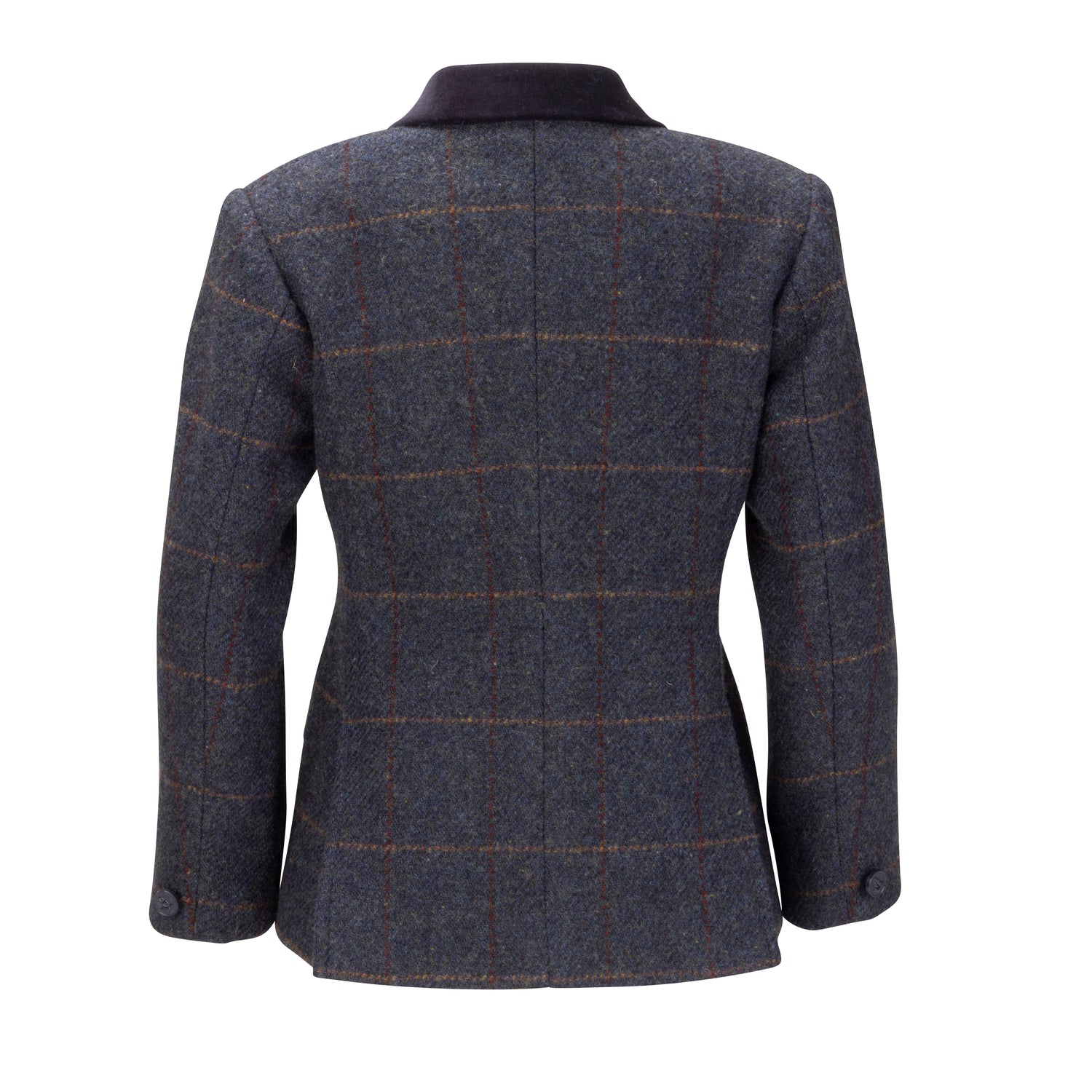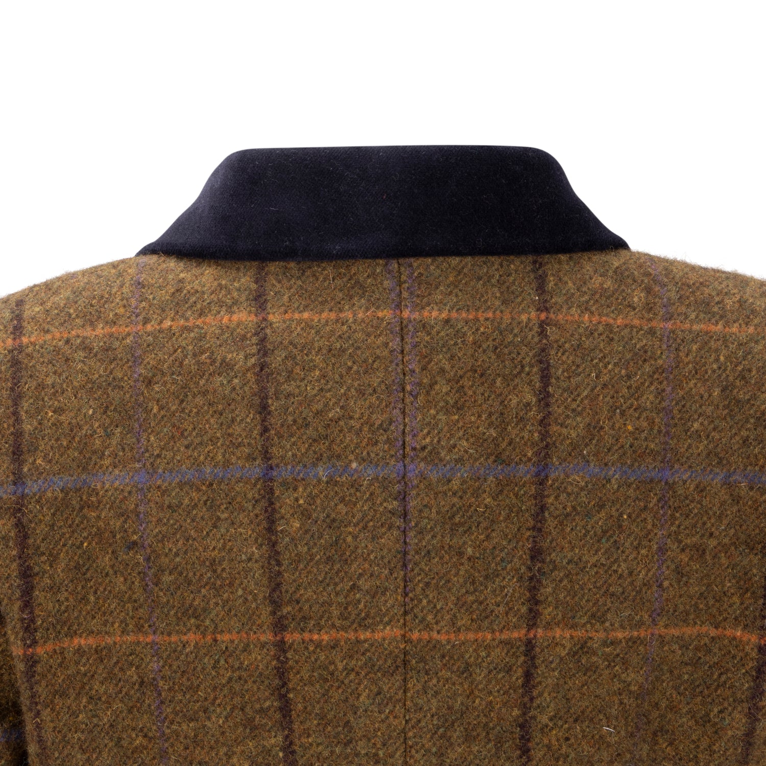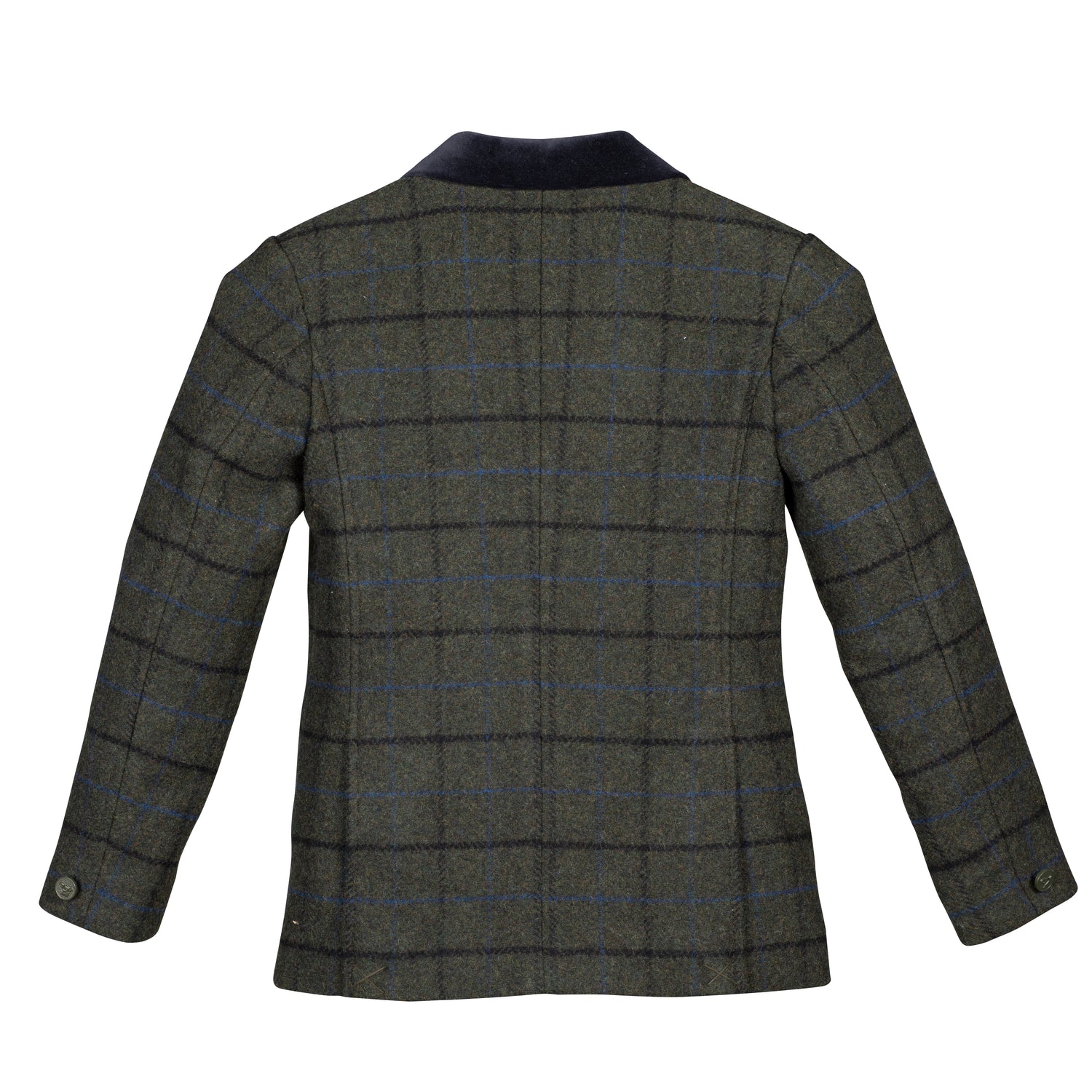 Une veste de concours classique traditionnelle avec une coupe fraîche et moderne à carreaux en tweed mélangé de laine. Le détail style : coupe ajustée, col et poches bordés de velours, doubles fentes arrière, détails de boutons cheval, deux poches à rabat, doublure imprimé faisan, marque Aubrion. Double fermeture pour garçon ou fille.