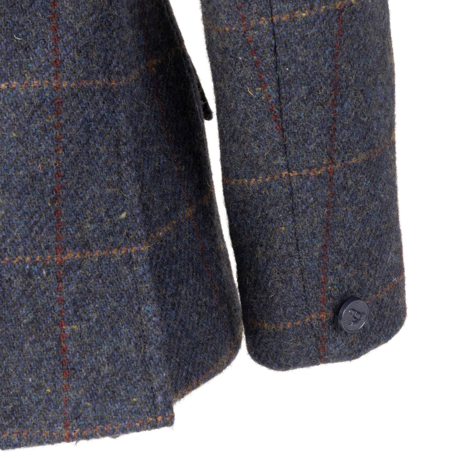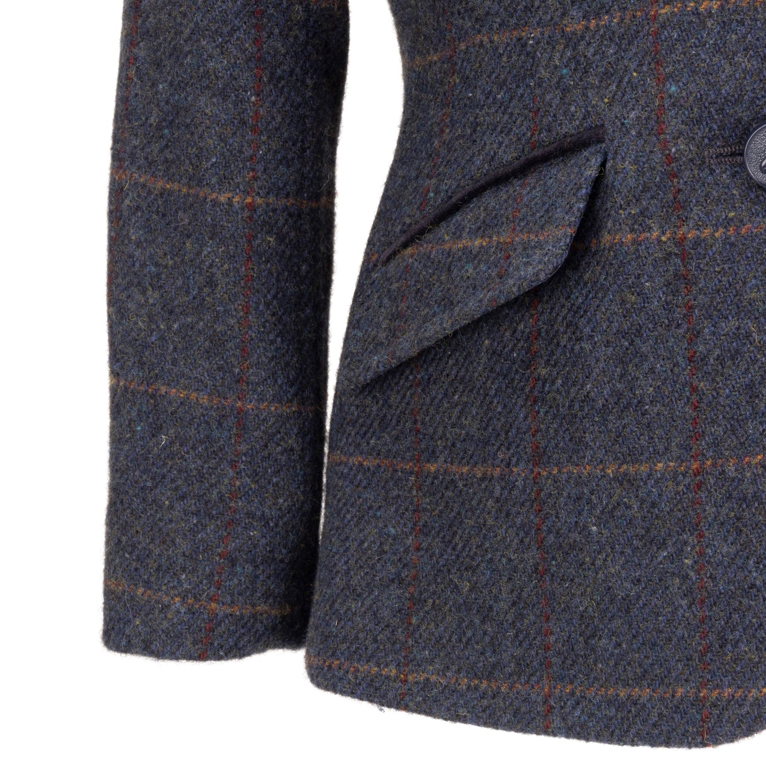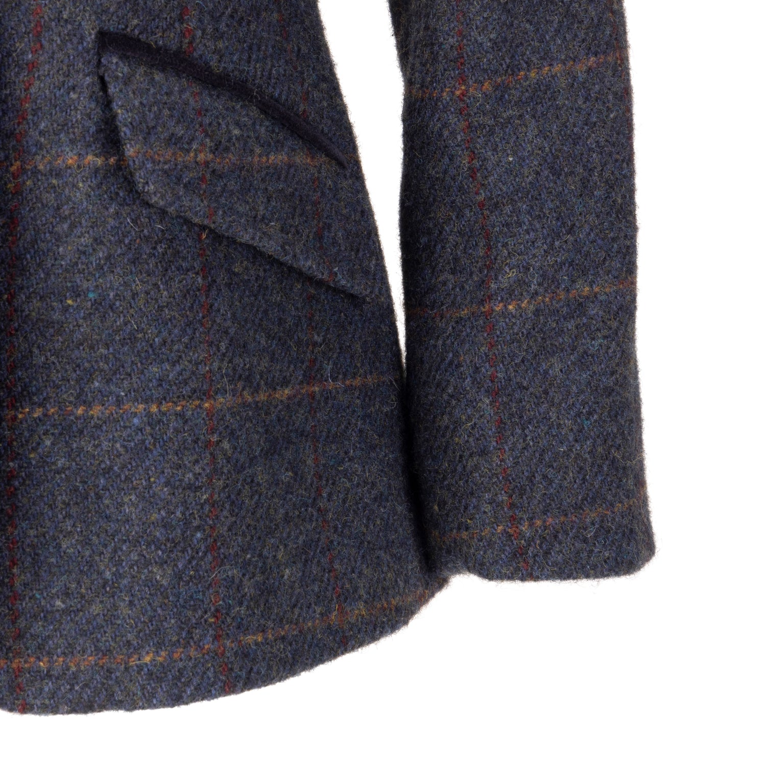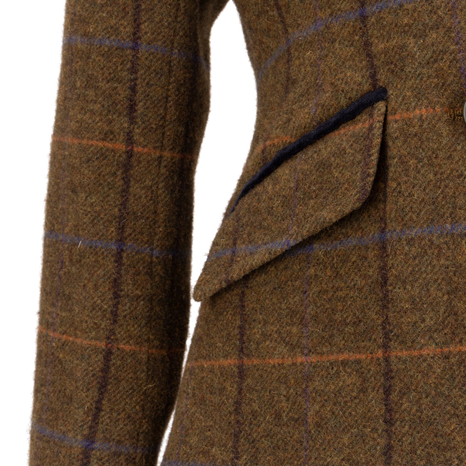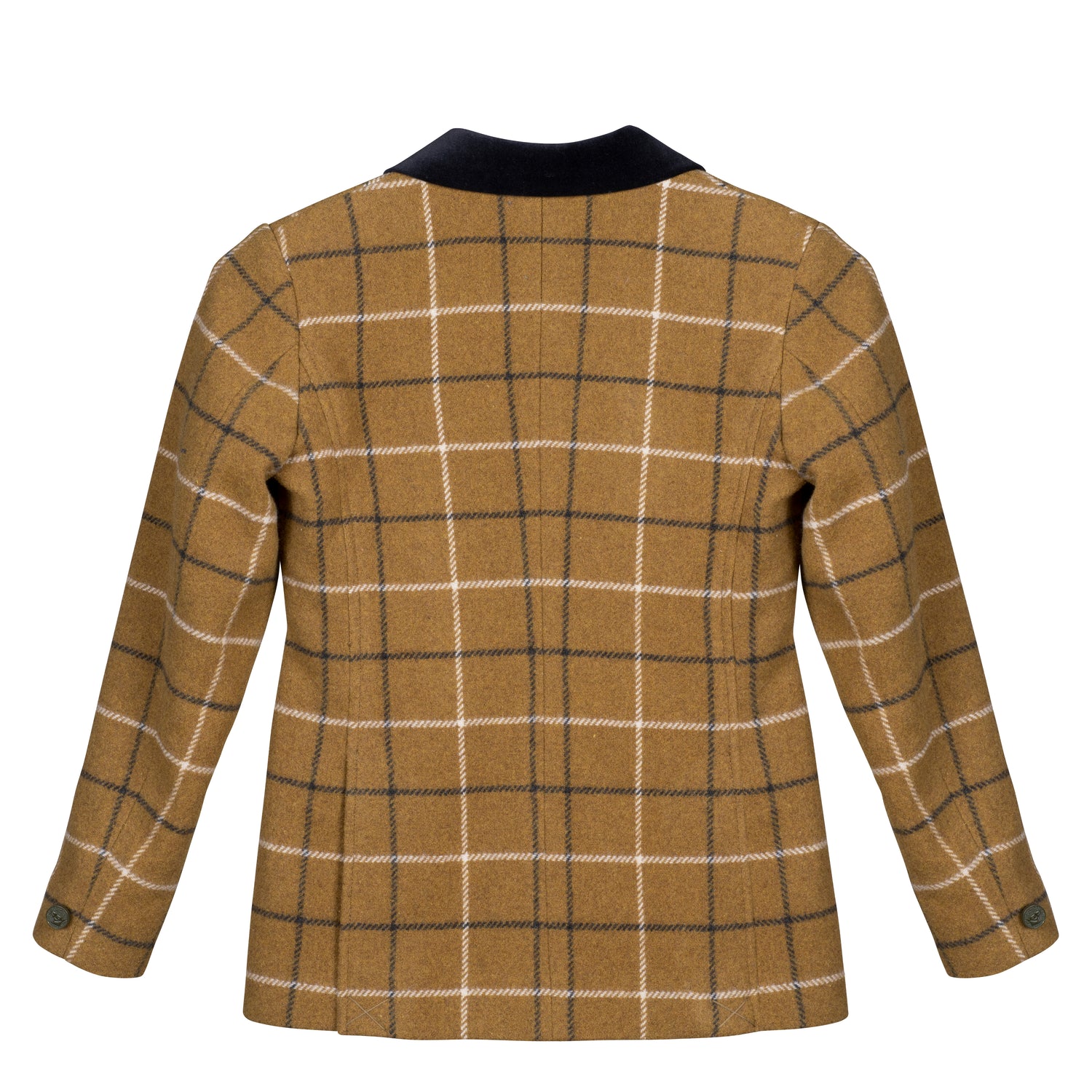 Une veste de concours classique traditionnelle avec une coupe fraîche et moderne à carreaux en tweed mélangé de laine. Le détail style : coupe ajustée, col et poches bordés de velours, doubles fentes arrière, détails de boutons cheval, deux poches à rabat, doublure imprimé faisan, marque Aubrion. Double fermeture pour garçon ou fille.