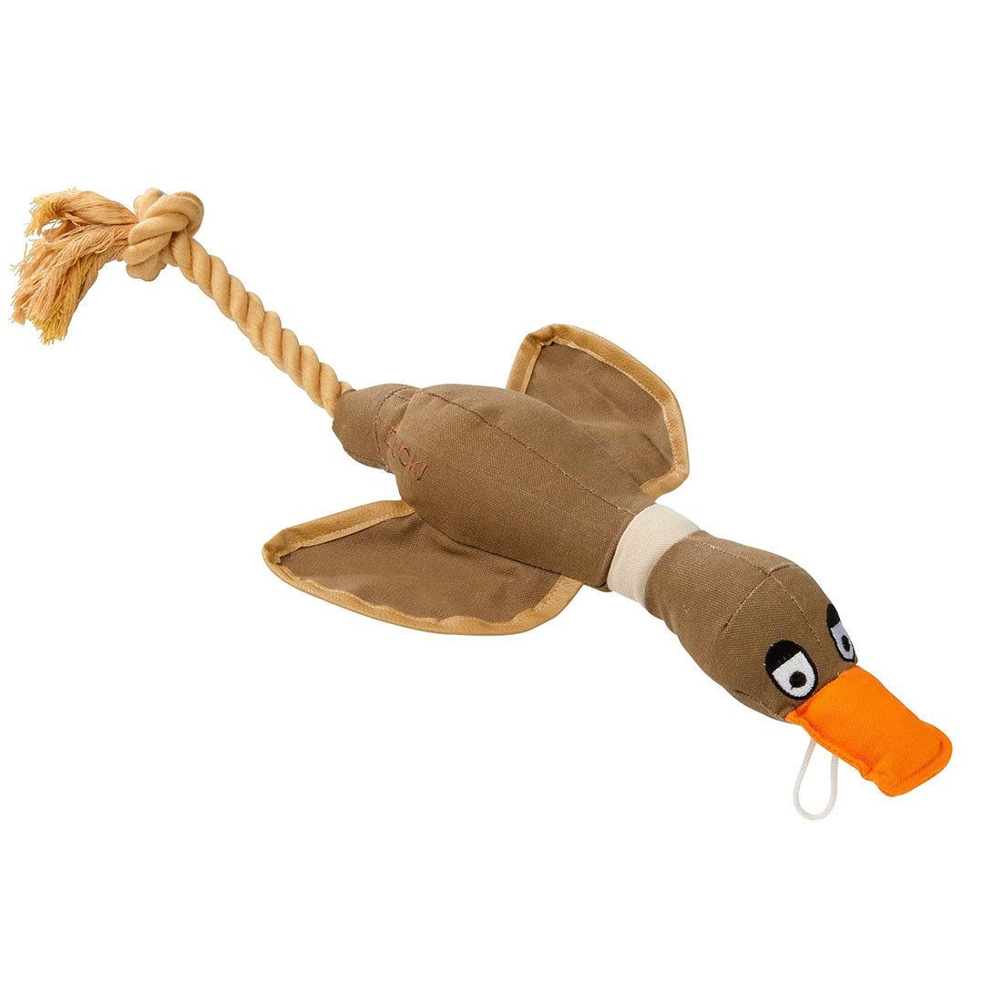 Le lanceur de canard avec ailes House of Paws est un canard en toile amusant avec une queue en corde, idéal à lancer pour votre chien et à jouer à rapporter.