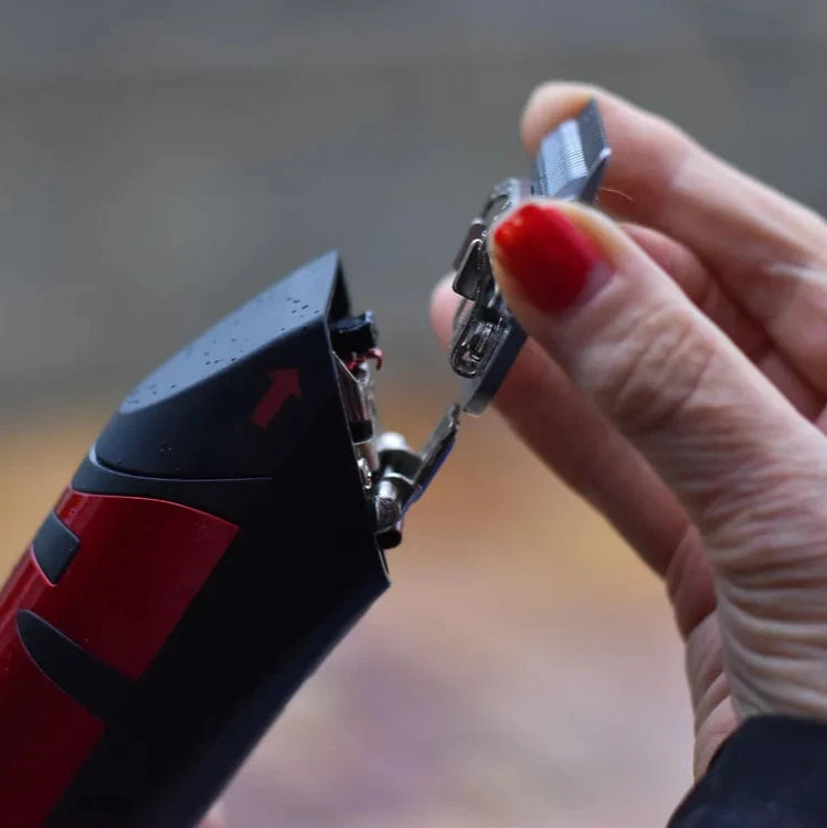 It is a pre-tensioned blade which snaps on to the latch situated inside the headpiece of the clipper.