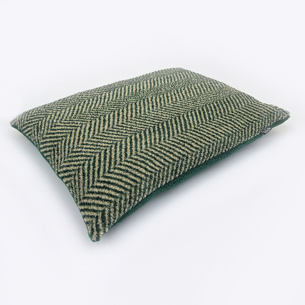 Spare cover for the fleece green herringbone duvet in characteristic green herringbone design, featuring forest green and beige colours.