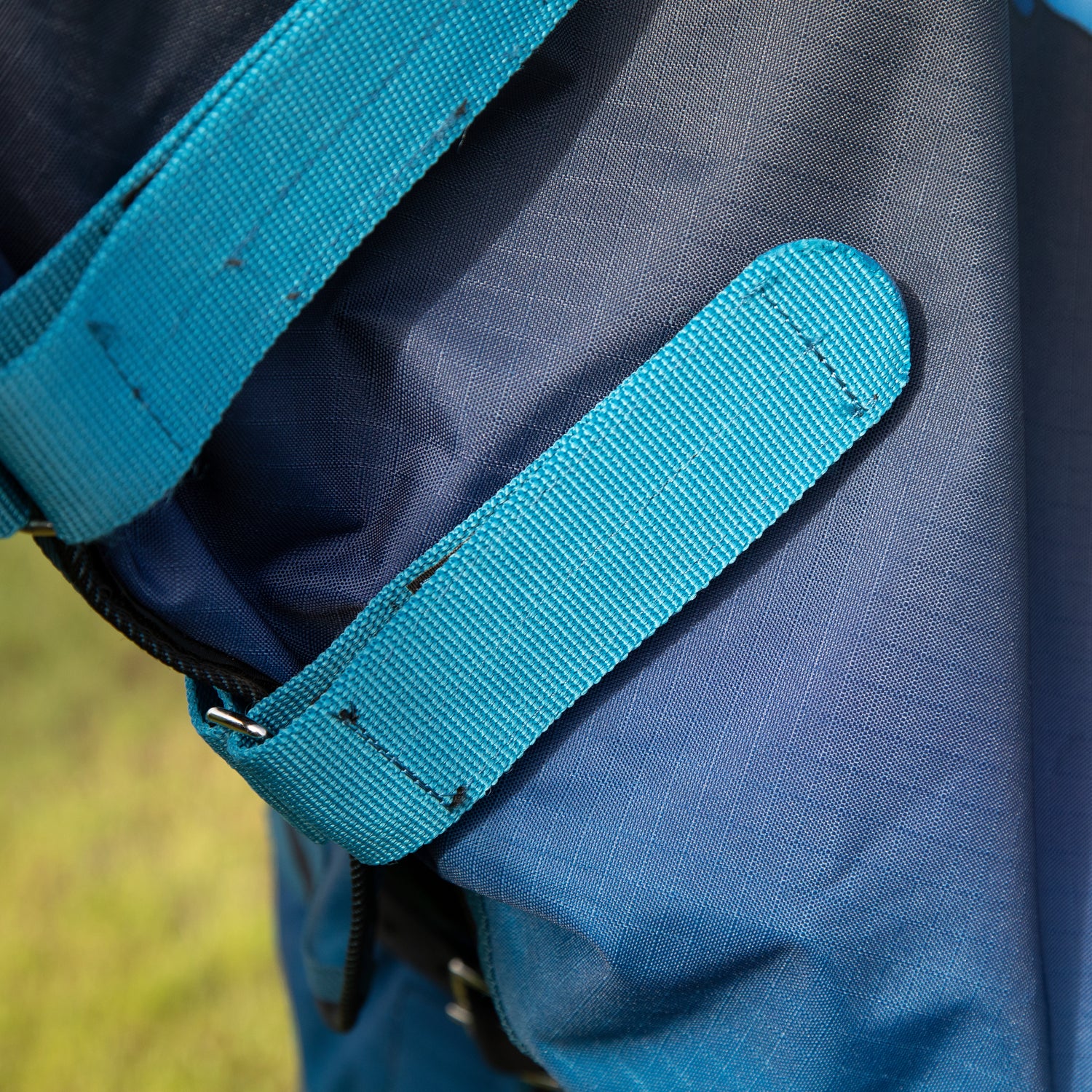 Conçue pour résister à une usure moyenne sur le terrain, la couverture est dotée d'un extérieur ripstop 600 deniers entièrement imperméable, et avec l'avantage supplémentaire d'un cou profilé, vous pouvez sortir votre cheval en sachant qu'il sera heureux et au sec, et relativement exempt de boue!