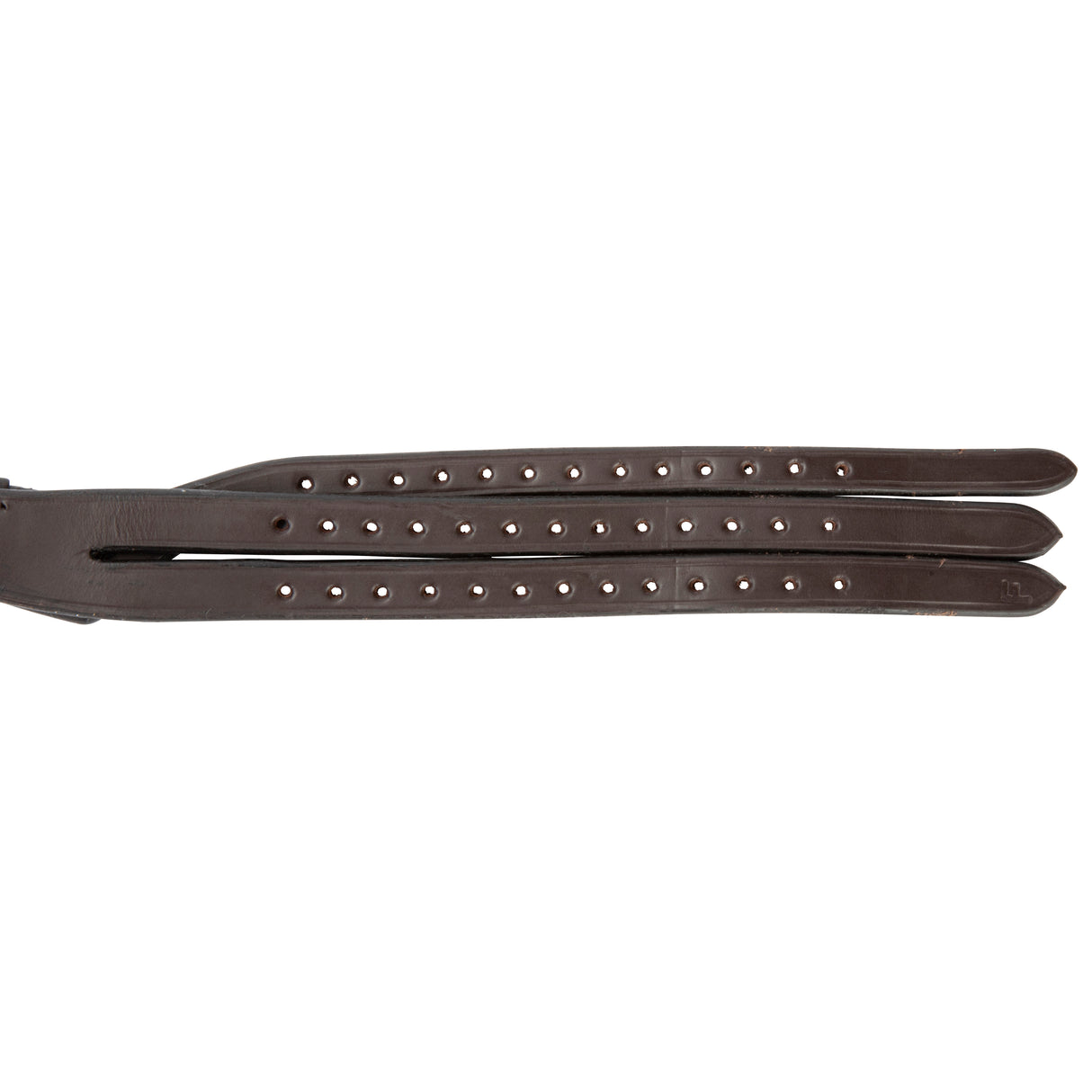 The FreedomFit Velociti LUSSO headpiece is designed to relieve pressure thanks to three part form fitting crown which has an airflow poll gap and cut away freedom-ear profile. Soft leather is combined with generous, anti-shock leather lining at the headpiece for enhanced cushioning. Elegant profile due to the sleek, angled throatlash strap (throat lash supplied separately).