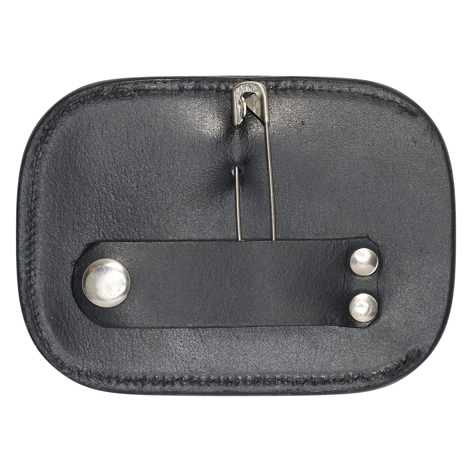 The square leather competition number set offers a timeless design with space for three digits. The safety pin and snap button closures make it reliable and easy to use.