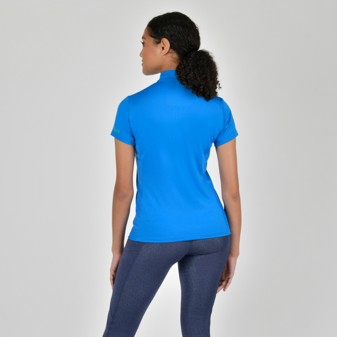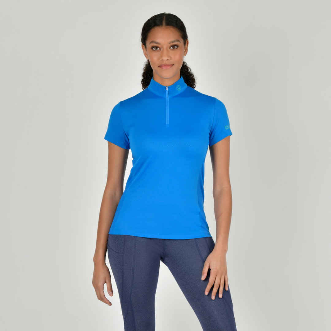 Le haut à manches courtes Dublin Airflow pour femme est un excellent haut ou couche de base pour l'entraînement quotidien, doté à la fois d'une protection solaire et de la technologie Comfort Dry pour un confort toute la journée, les panneaux latéraux en mesh offrent une ventilation supplémentaire ainsi qu'un look flatteur. Ce haut à manches courtes est doté d'une patte de boutonnage 1/4 zippée avec col montant pour une protection supplémentaire du cou, d'une marque contrastée sur la manche et à l'intérieur du col. Un favori pour les saisons les plus chaudes.