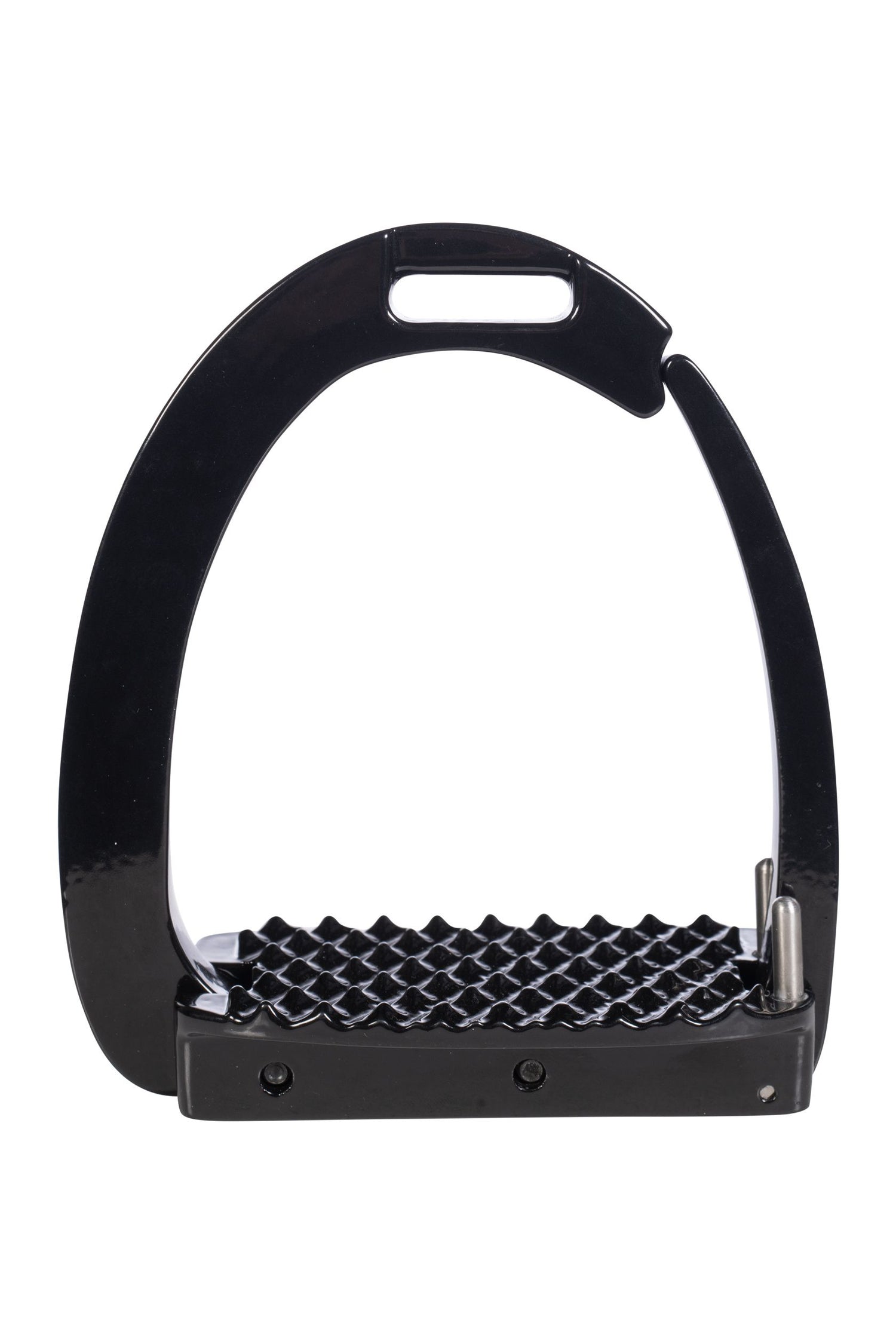 - Articulated arm opens in the event of a fall, preventing the foot from jamming in the stirrup