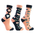 Perfect for any passionate pony lover! This pack of three socks are made from a moisture wicking antibacterial bamboo fabric with padded soles for comfort. The first sock is designed with an argyle print the second design is a repeated Pony Passion pattern on a blush background and the third sock a repeated Pony Passion pattern on a blush background. All feature coordinated toe heel and cuff.