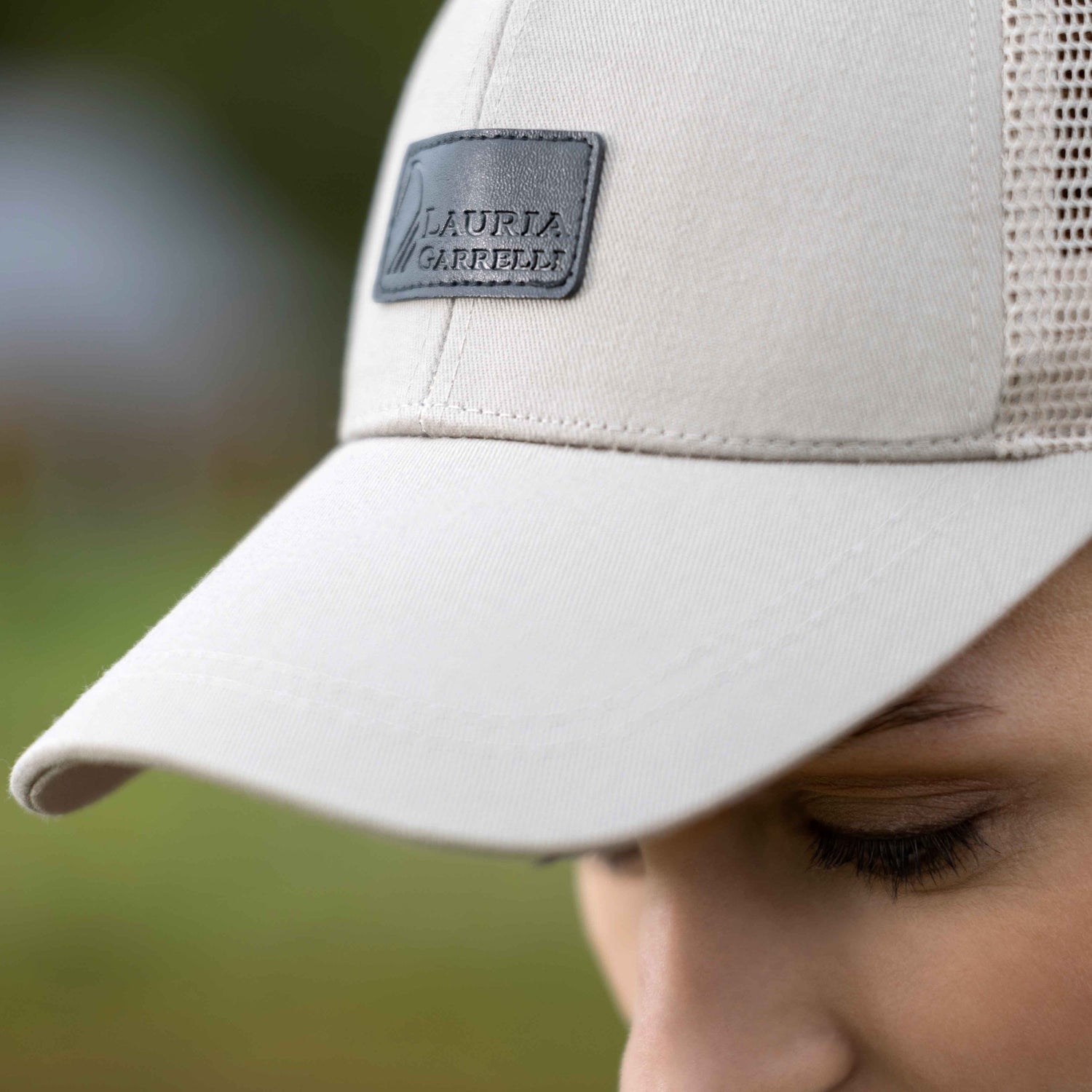 The baseball cap Amalfi by Lauria Garrelli combines stylish design with practical functionality. Made from 100% cotton, it is comfortable to wear and ensures optimum ventilation thanks to the mesh inserts on the sides. The discreet cut-out at the back of the head makes it easy to wear a plait - perfect for long riding or training sessions. In an elegant taupe colour, the cap blends harmoniously into any outfit, while the stylish Lauria Garrelli logo in a leather look adds a high-quality accent.