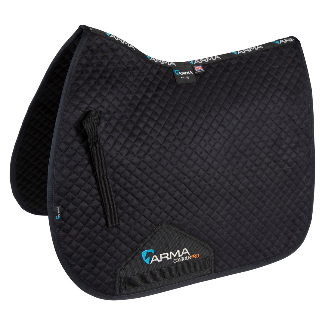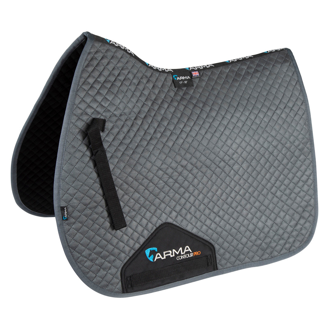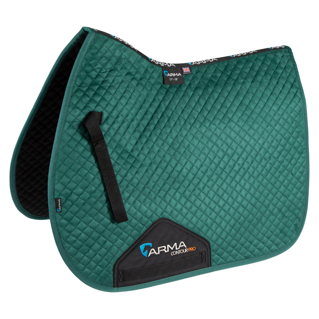 Fini avec une couche supérieure douce en daim, ce tapis de selle ARMA est un excellent moyen de garder votre cheval heureux pendant que vous montez, tout en vous assurant d'avoir fière allure en le faisant !