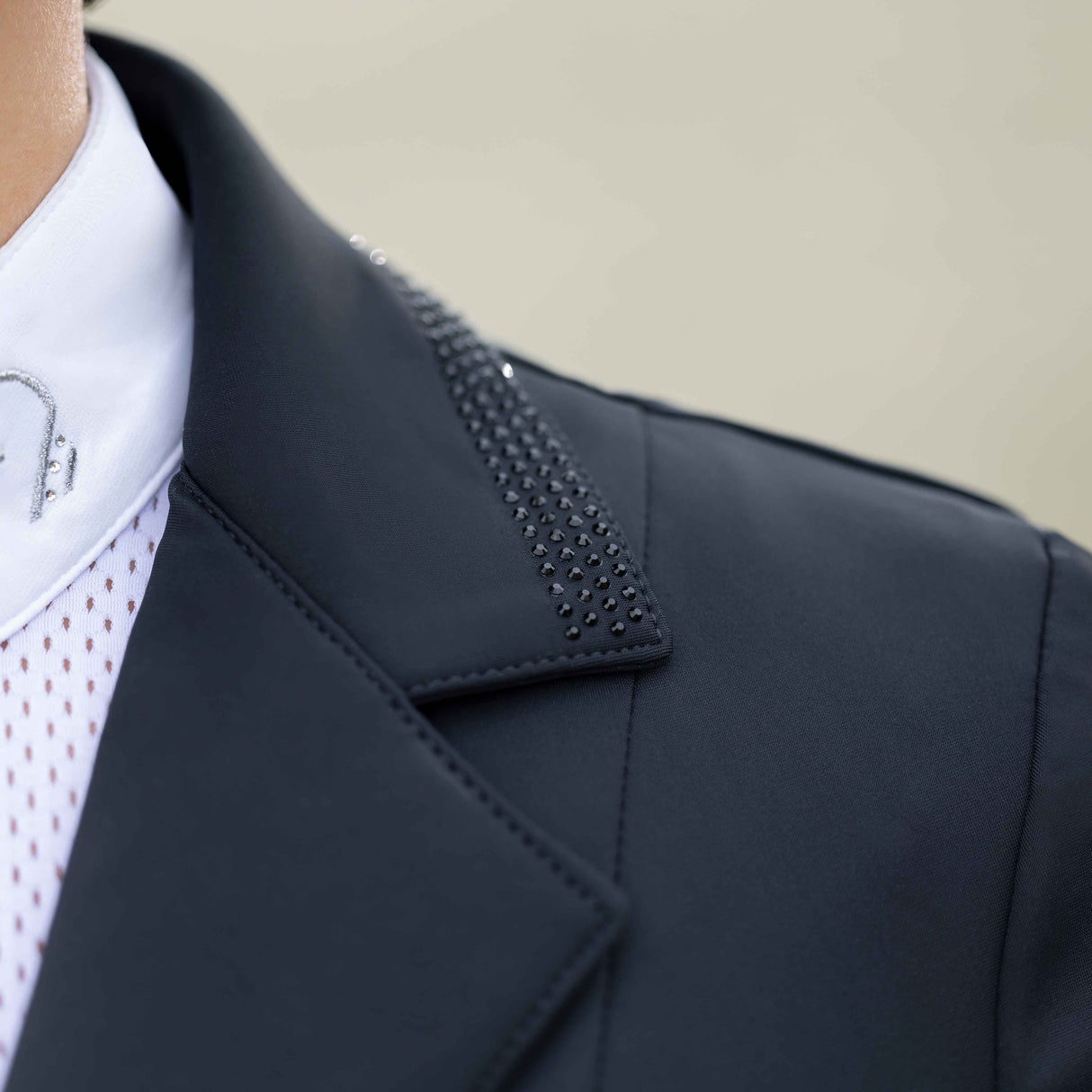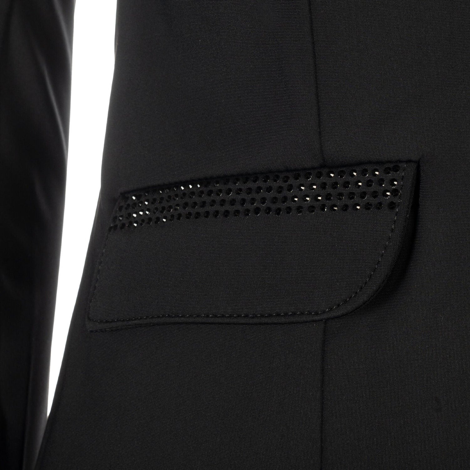 The HKM Ladies Competition Jacket -Amalfi- is the epitome of elegance and functionality. Made of crease-resistant material with a dirt-repellent surface, this jacket guarantees a flawless appearance. The concealed zip and rhinestone accents add a touch of sophistication, while riding slits and practical pockets provide maximum comfort.