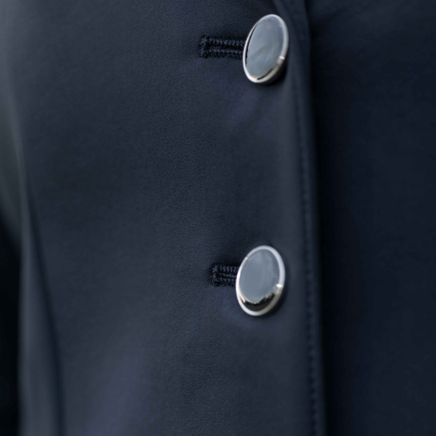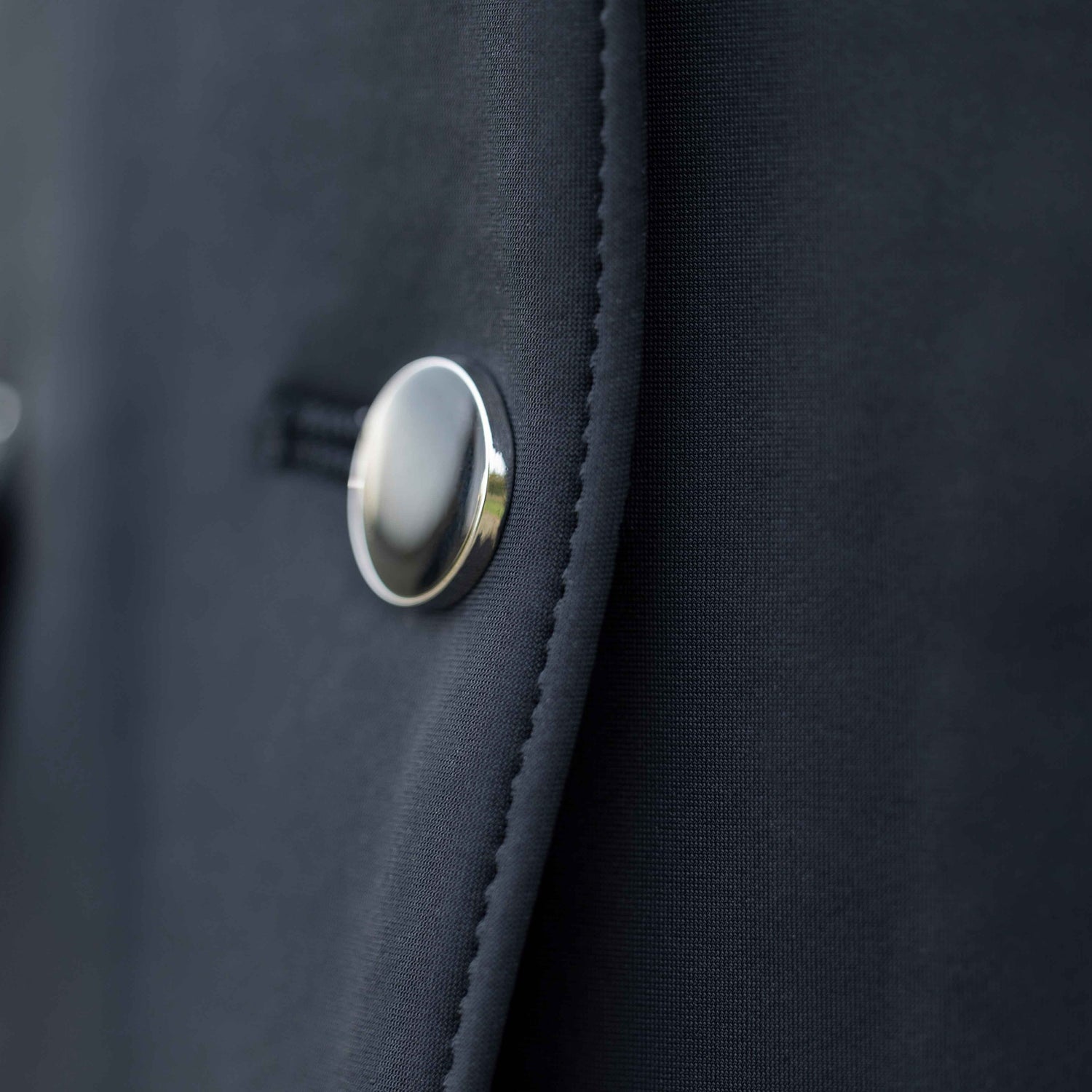 - Hidden zipper behind button bar