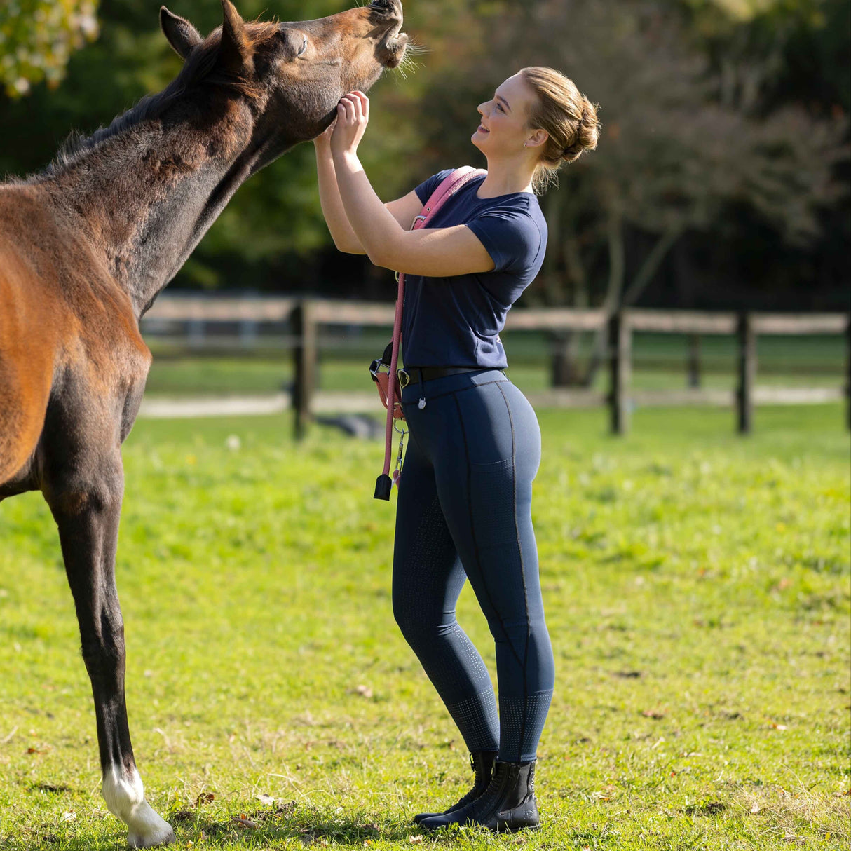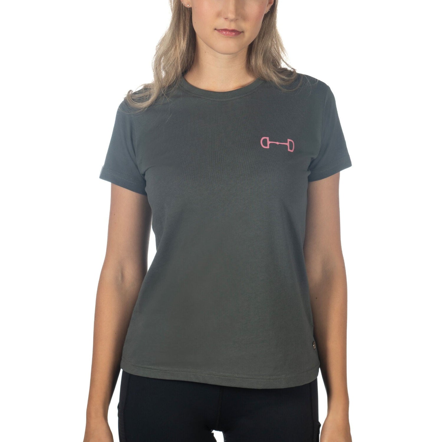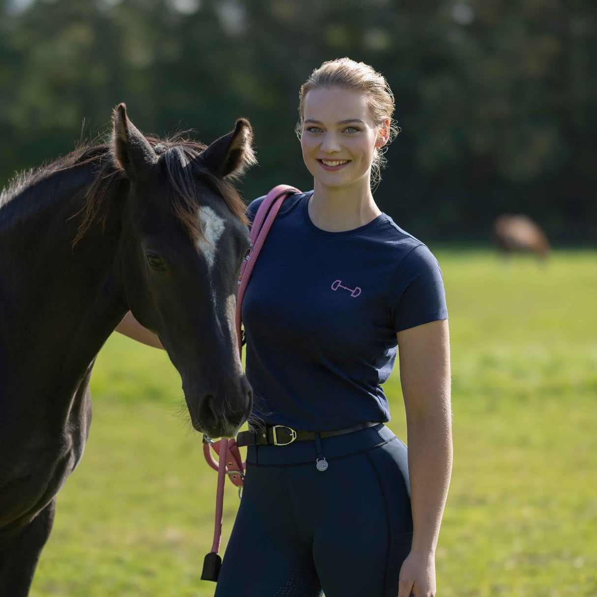 The T-shirt Excellent combines functionality, comfort and style. Made from 100% cotton, it is particularly soft, skin-friendly and breathable - ideal for warm days in the stable or everyday wear. The fashionable decorative print in a contrasting colour is a real eye-catcher: a large motif in the shape of bits on the back creates a stylish riding look, while a small bit detail on the chest harmoniously rounds off the design.