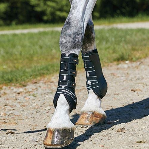 Maille 3D absorbante et confortable pour évacuer l'humidité et garder la jambe au sec tout en étant parfaitement adaptée à la jambe du cheval, Combinaison parfaite de support de boulet et de protection des tendons, Fermetures à broches élastiques à dégagement rapide et facile pour assurer la stabilité
