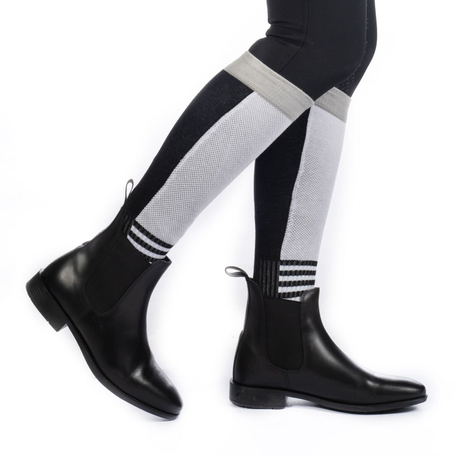The HKM Olympia riding socks are made from 75% cotton for optimal comfort and have a mesh knit for ideal ventilation. The reinforced sole and firmly knitted ribbed inserts provide extra strength and support as well as maximum compression. The light summer socks come in different colors to suit every taste.