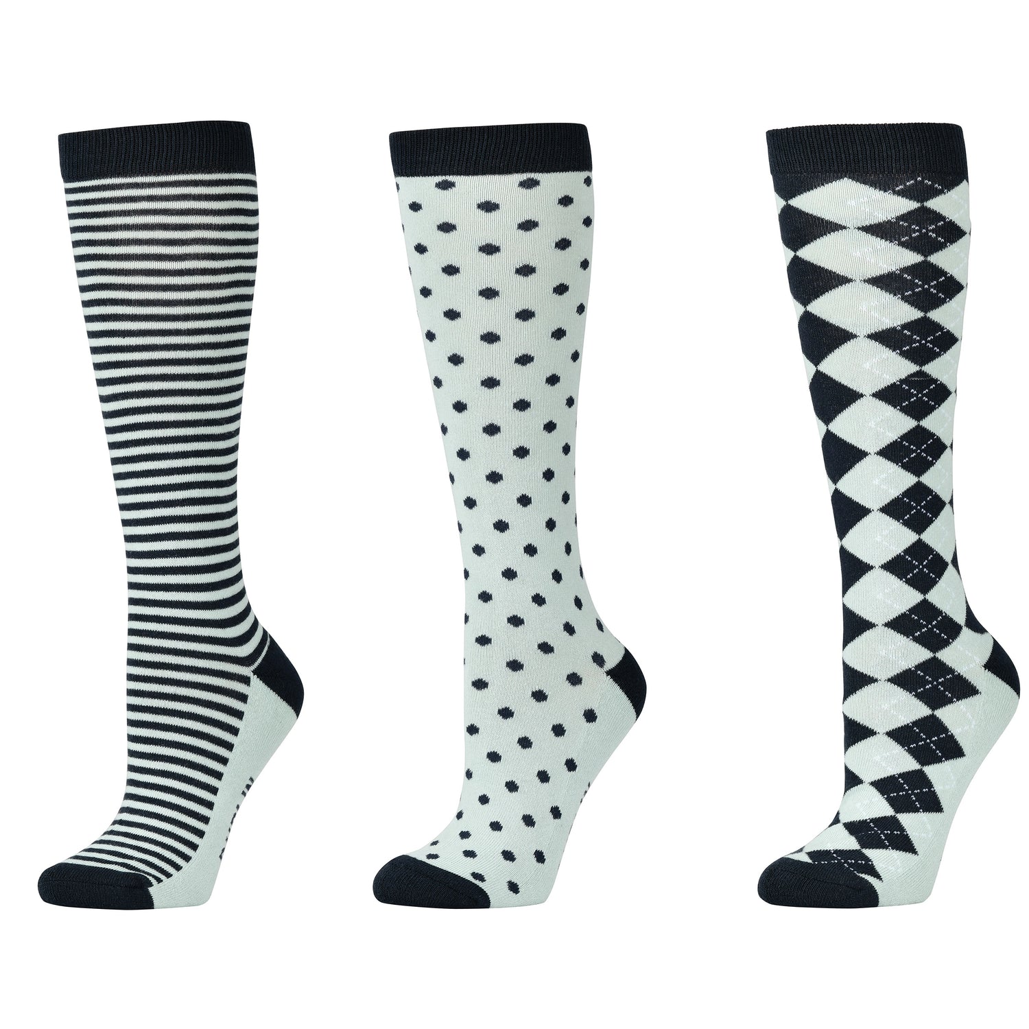 Ajoutez du plaisir et de la couleur à votre tenue d'équitation avec les chaussettes Dublin 3 Pack. Ces paquets de chaussettes hautes ajoutent de la couleur et du confort à n'importe quelle tenue, fabriqués à partir d'un coton extensible naturellement respirant, vos pieds resteront à l'aise toute la journée. Un pack de 3 paires de chaussettes aux motifs assortis.