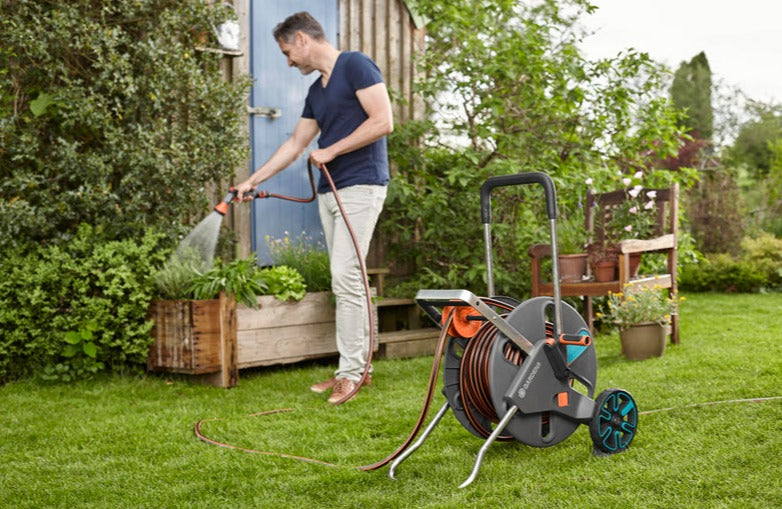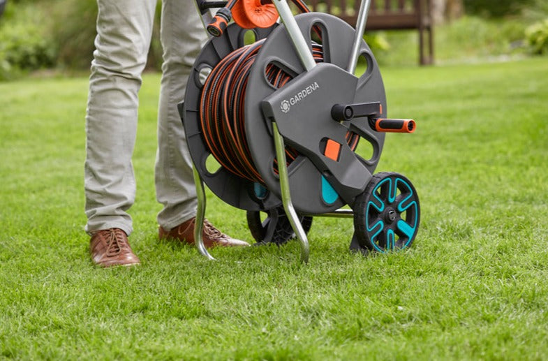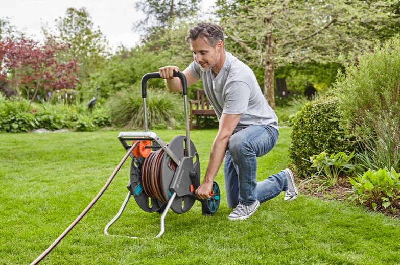 It has an integrated drip stop, which prevents water from leaking out after use or during transport. The Hose Trolley CleverRoll L Easy is made in Germany and comes with a five-year warranty from GARDENA. Watering that's always ready for action. Easy handling and a secure stand - the right hose reel for every garden size.