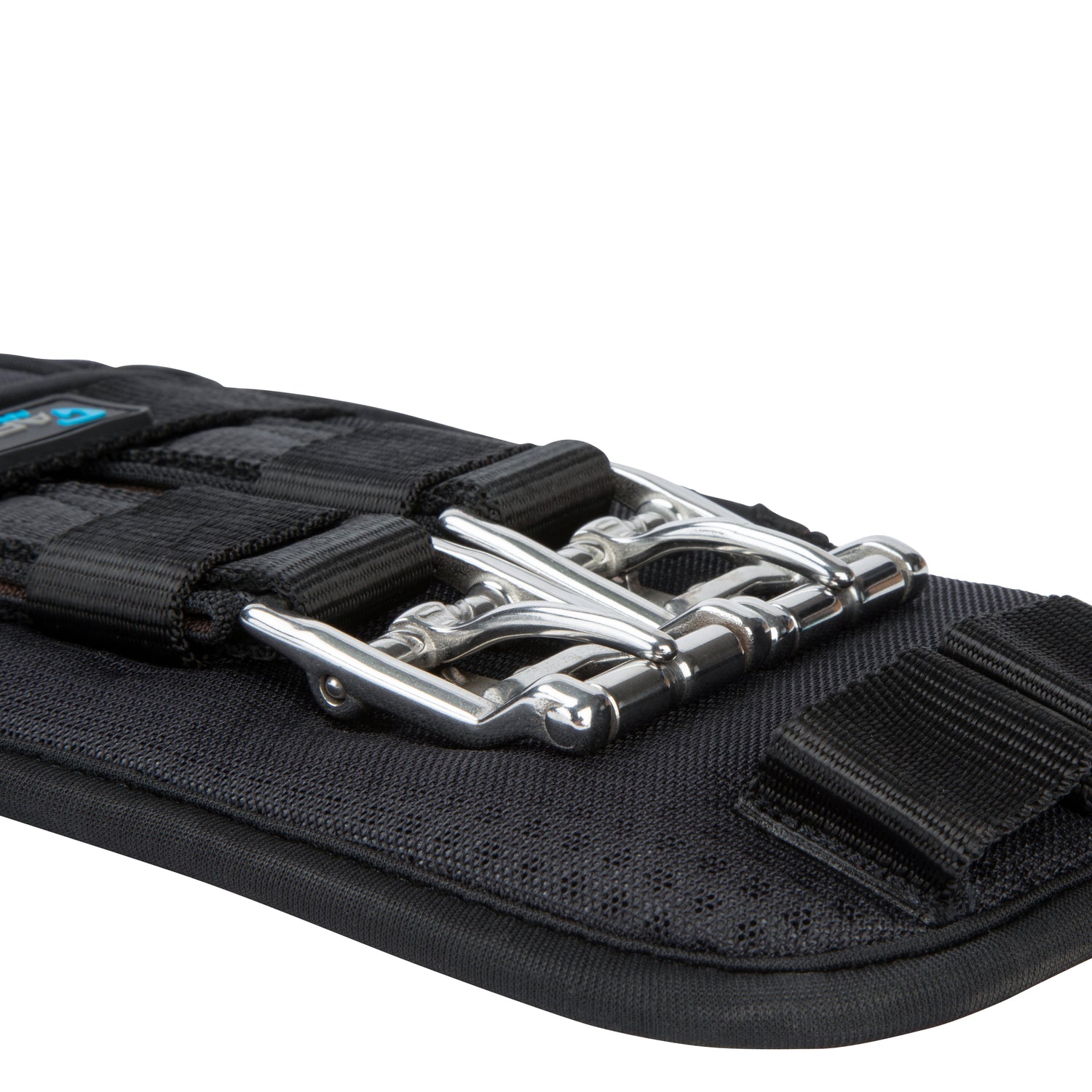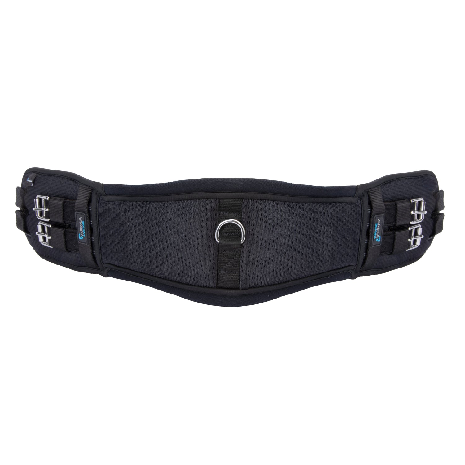 The outer girth features a 3D aerated surface to help bring air movement through to the underlayers, reducing moisture and heat build up. Contoured shaping supports the horse whilst allowing space behind the elbows for greater freedom of movement. Double layer pressure alleviating elastic inserts at both ends with curved self-closing loop bar roller buckles at one end, standard roller buckles at the other. A centre D-ring for martingale and breastplate attachment. Stainless steel fittings for long lasting performance.