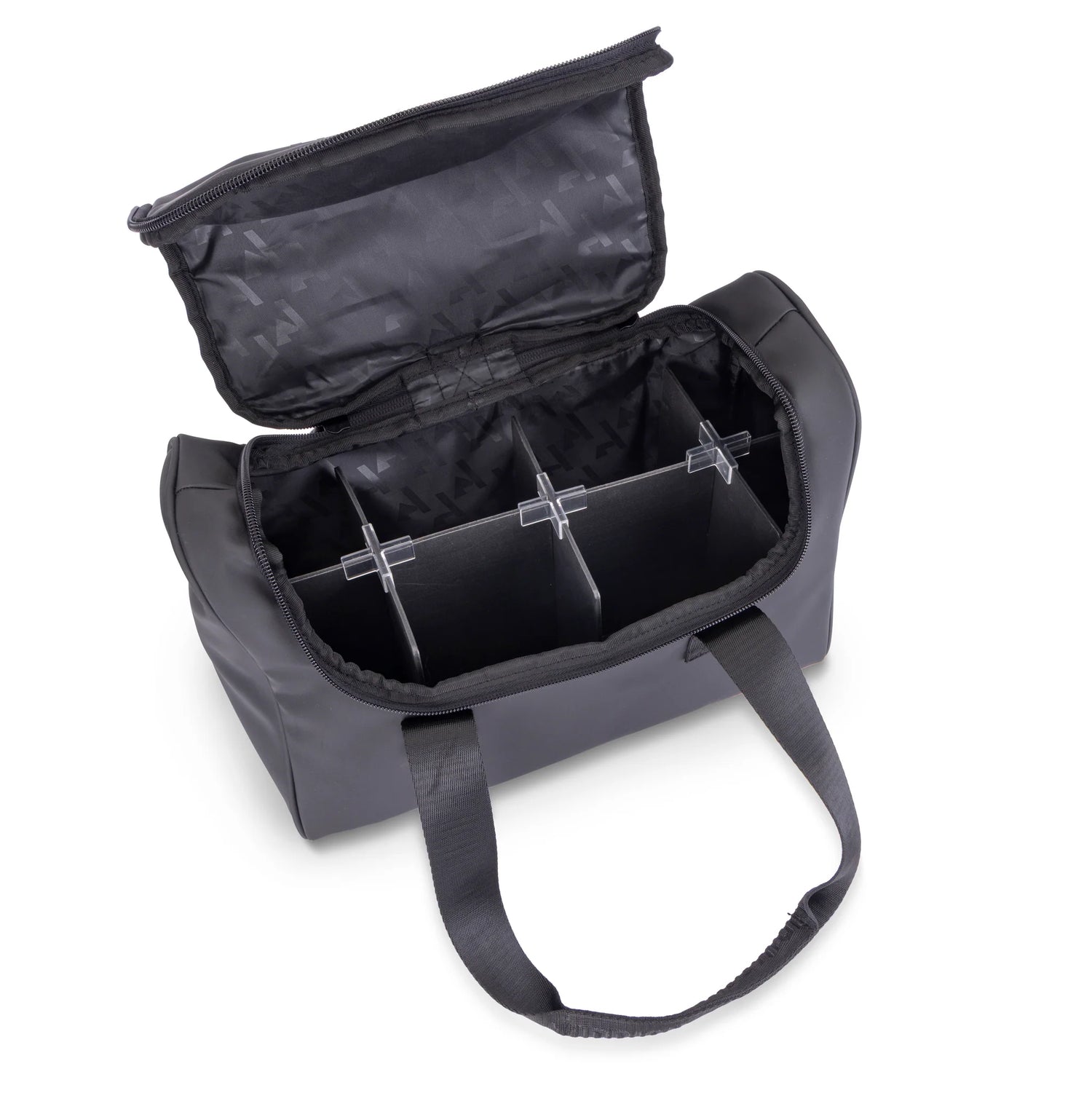 Keep kit organised and easy to access in the sleek Aubrion React grooming bag. The zip opening lid secures contents while on the move. The bag features an inner eight part divider, ideal for transporting bottles and keeping everything quick to find. The wipe clean outer has a sporty feel and the bag is styled with smart signature web.
