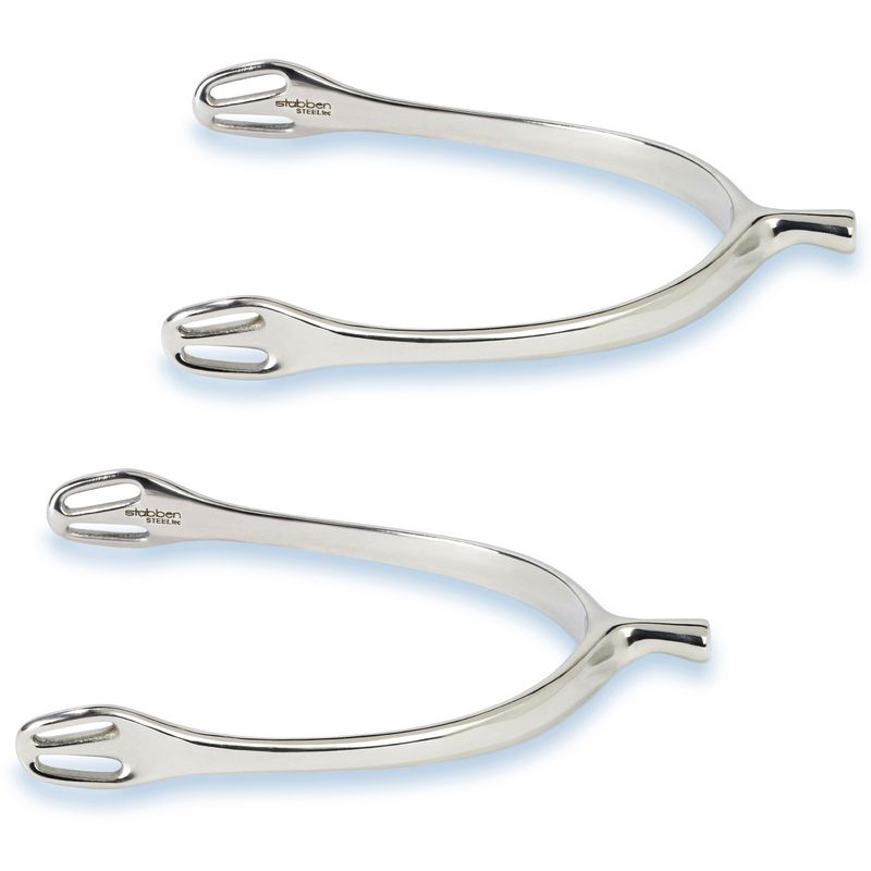 The Stubben Steeltec 1168 Dynamic Spurs boast an elegant design and a better fit for narrow-heeled riding boots, thanks to the special v-shaped heel design. They also offer a more comfortable fit with their offset loops, and are made of flexible stainless steel that can be molded to fit each individual's needs and comfort. These dynamic spurs are suitable for both men and women.