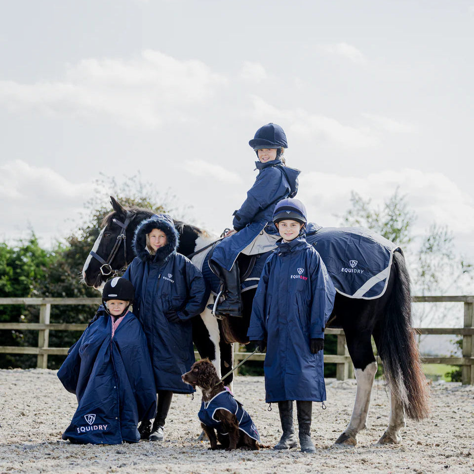 The EQUIDRY Waterproof Dog Coat features a soft, thin fleece lining, reflective logos and trim, and convenient lead and harness access. An adjustable body band provides extra chest coverage for a secure fit. Designed to coordinate with the range of EQUIDRY coats, this coat ensures your dog stays warm and dry on cold winter days.